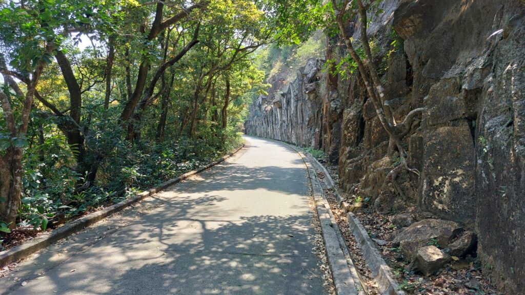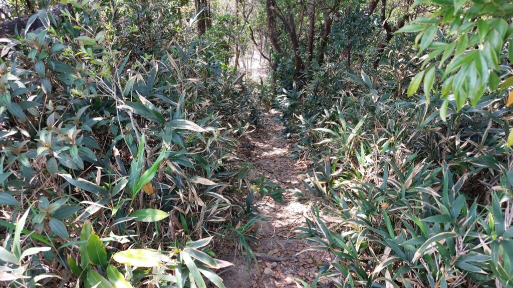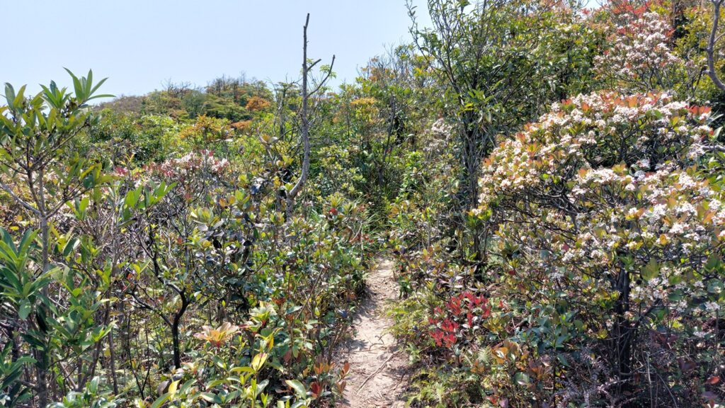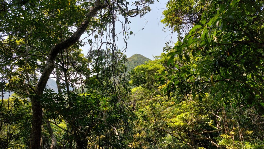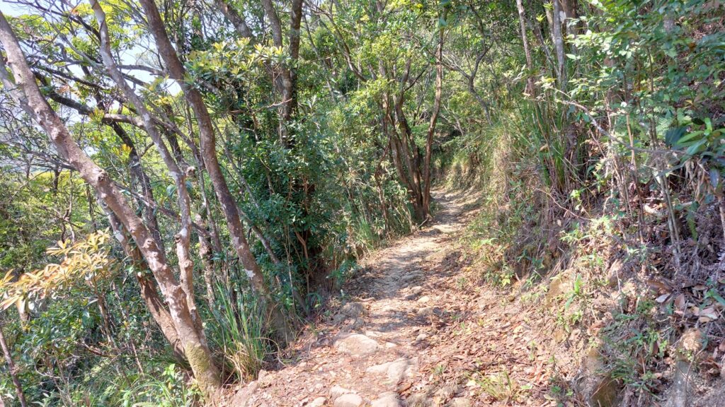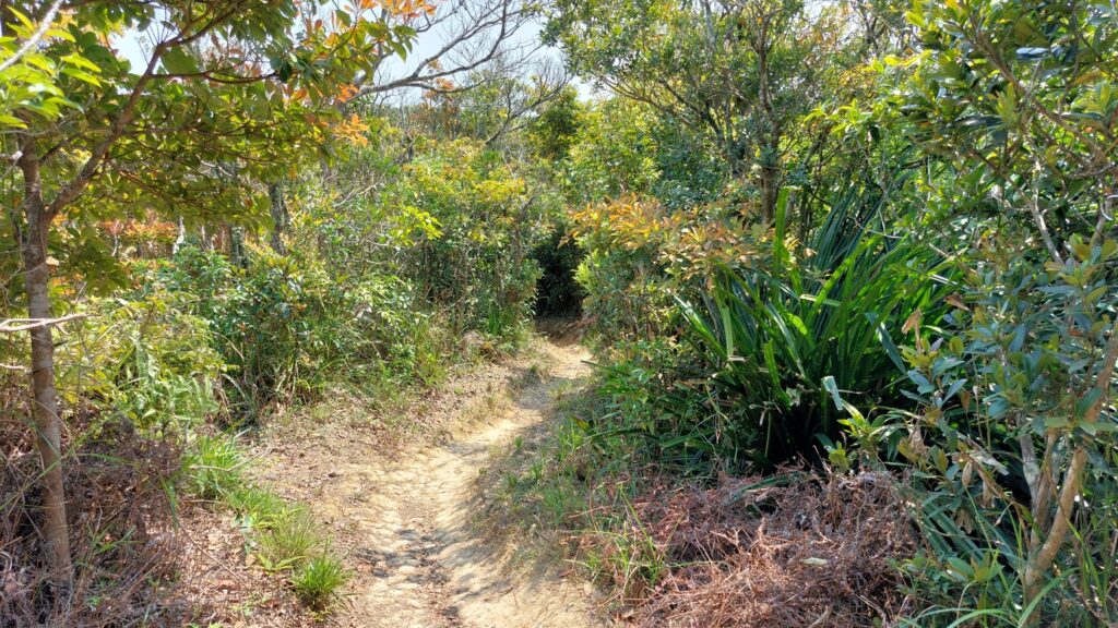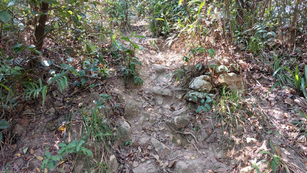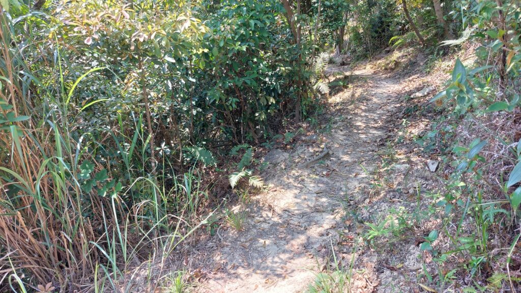 此行由林道上,行至山頂,由南脊落。南脊荒徑,多草叢樹枝,有些崎嶇陡峭,不過不算太難。落山至五爪金龍分岔路口時,看時間還早,就臨時決定加行野豬徑,行返大風坳,再落鰂魚涌。