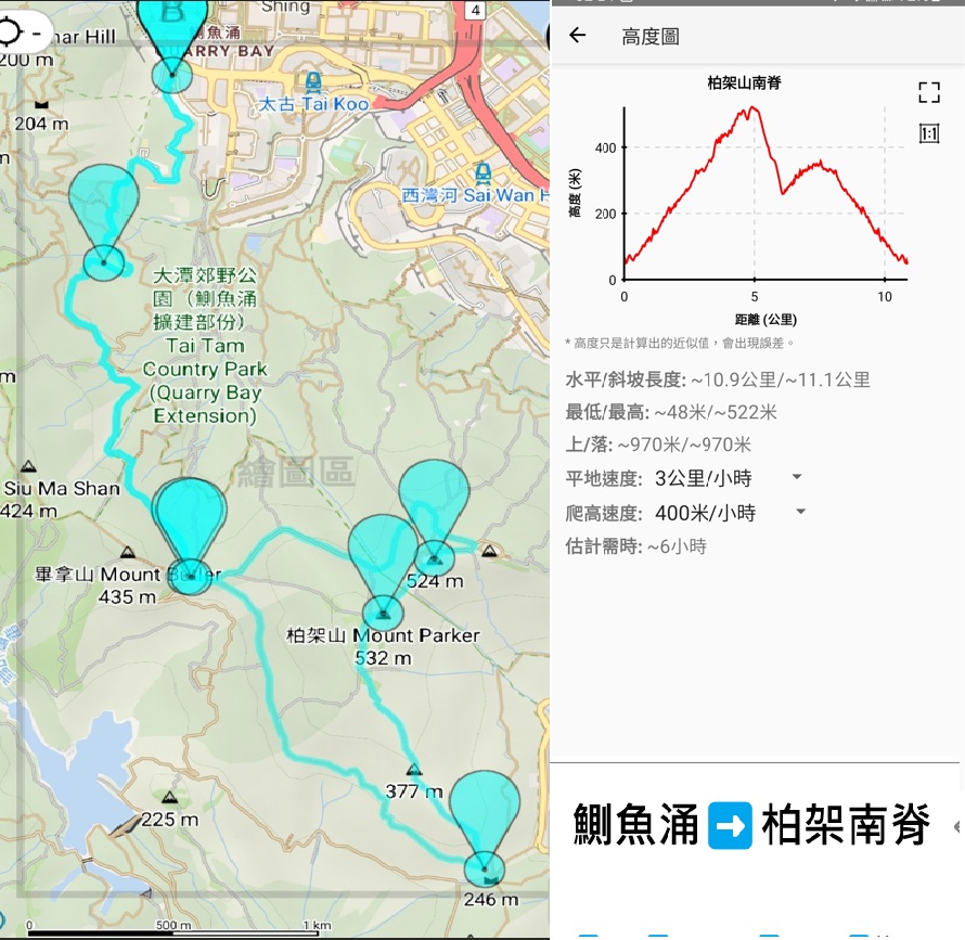 - 路線︰ 鰂魚涌➡柏架山道➡大風坳➡柏架山頂➡柏架南脊➡野豬徑➡大風坳➡鰂魚涌
