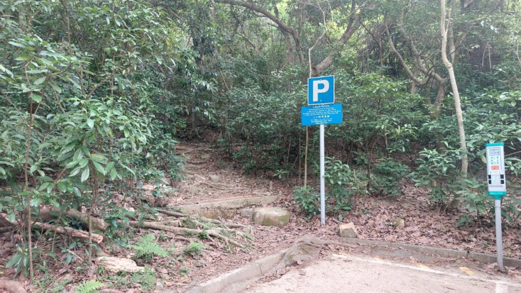 北潭涌站落車,左走穿過停車場盡頭,有個P標誌牌,旁邊就是上山入口。