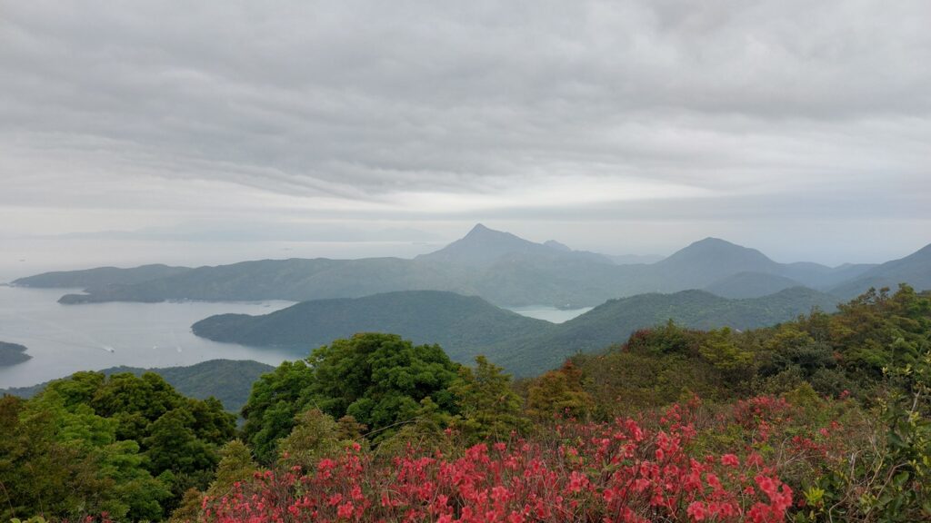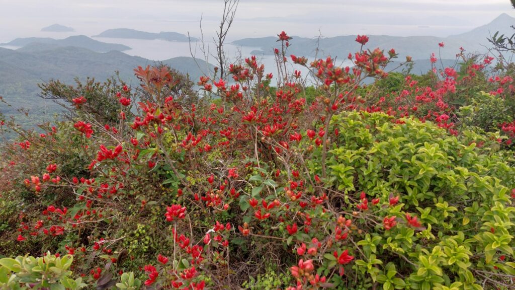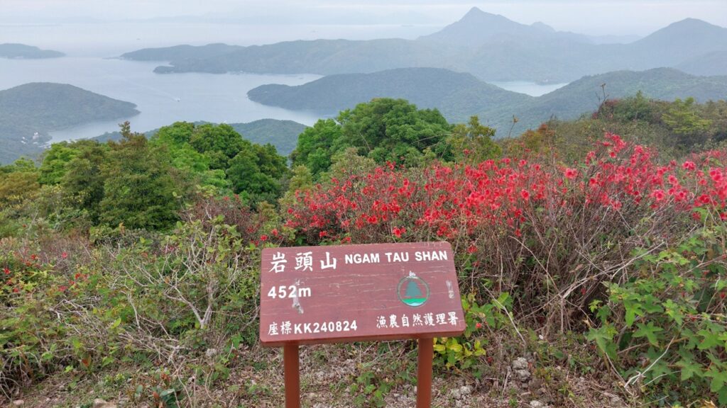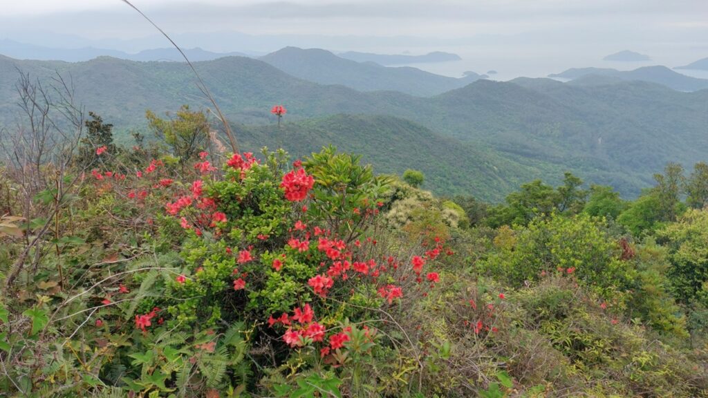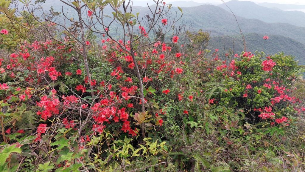 行至岩頭山頂時,帶來意外驚喜。山頂一大片正盛開的杜鵑花,非常壯觀漂亮。這是我在香港見過的最漂亮野生鮮花。