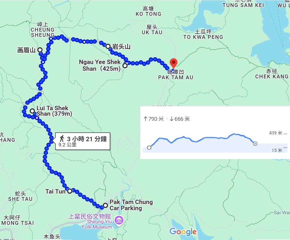 • 路線︰ 北潭涌➡太墩➡雷打石➡畫眉山➡岩頭山➡牛耳石山➡北潭凹