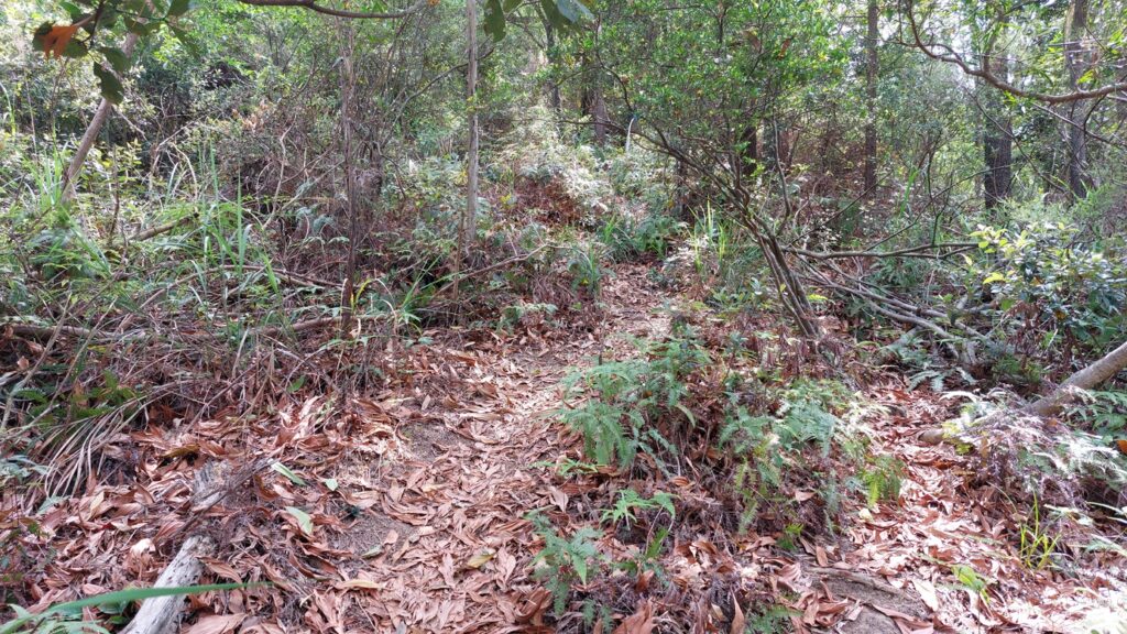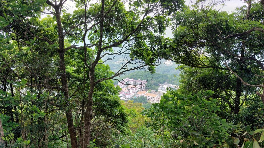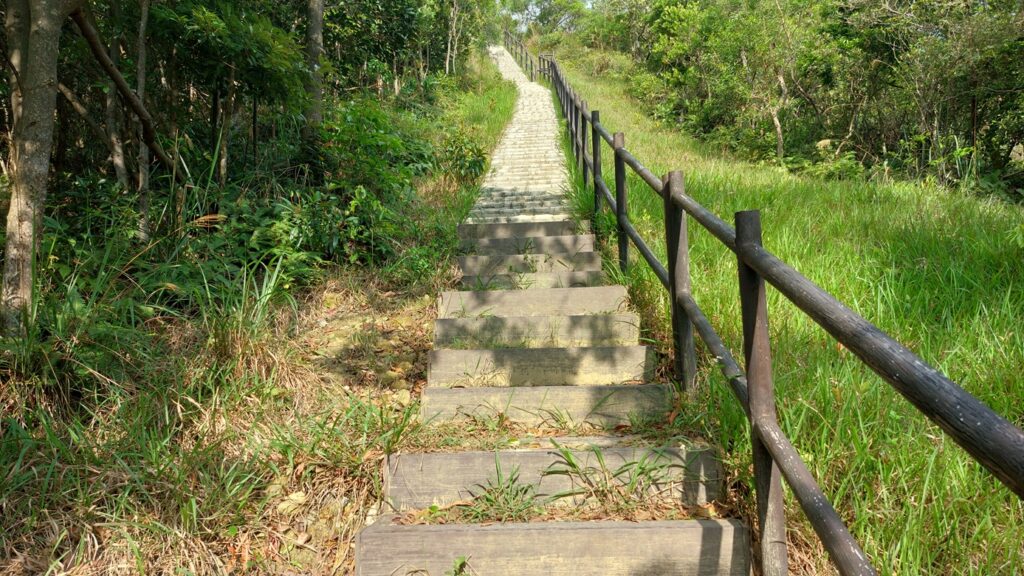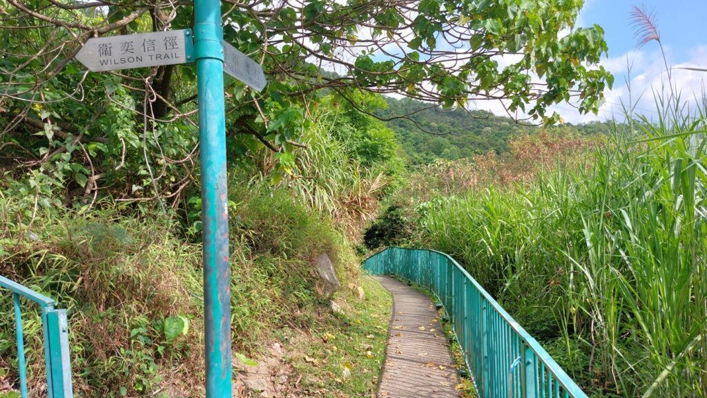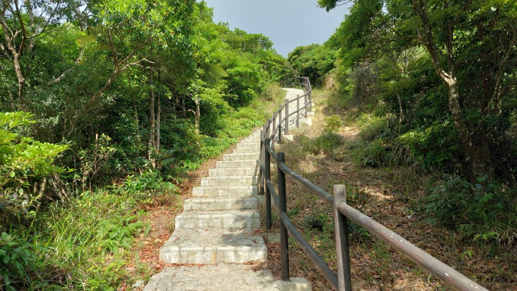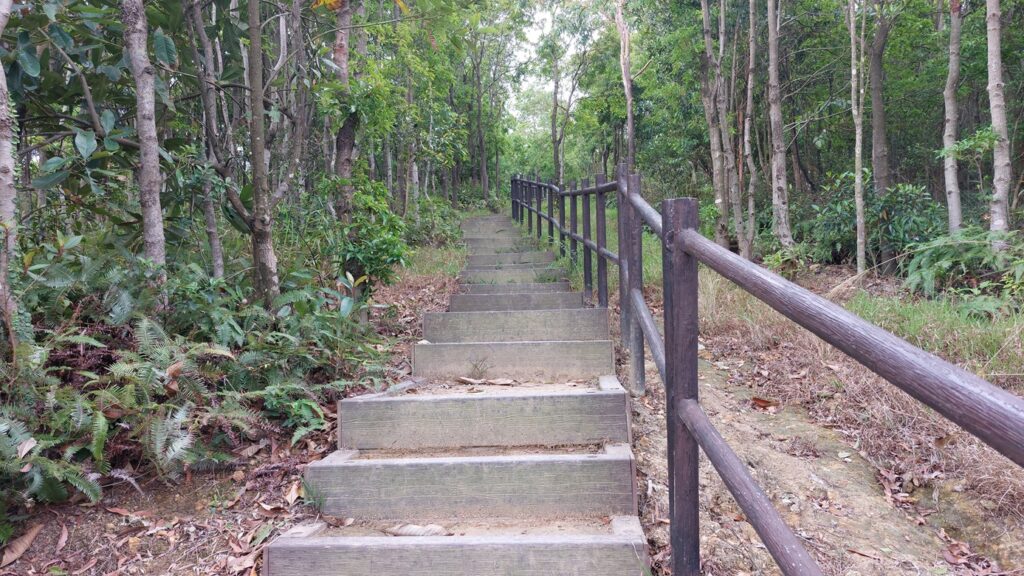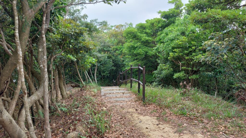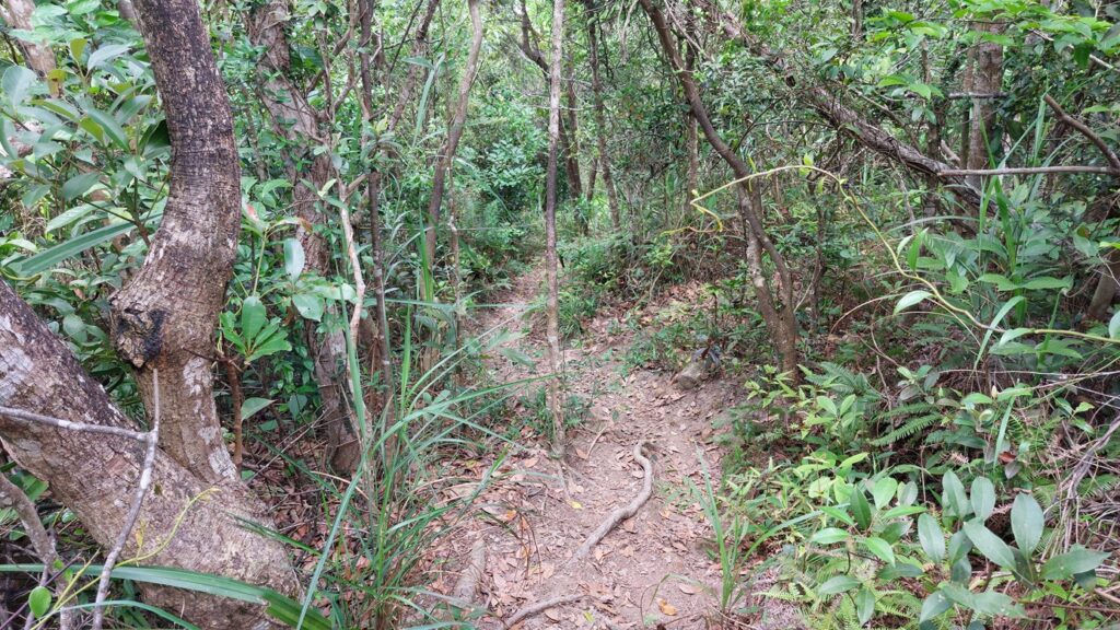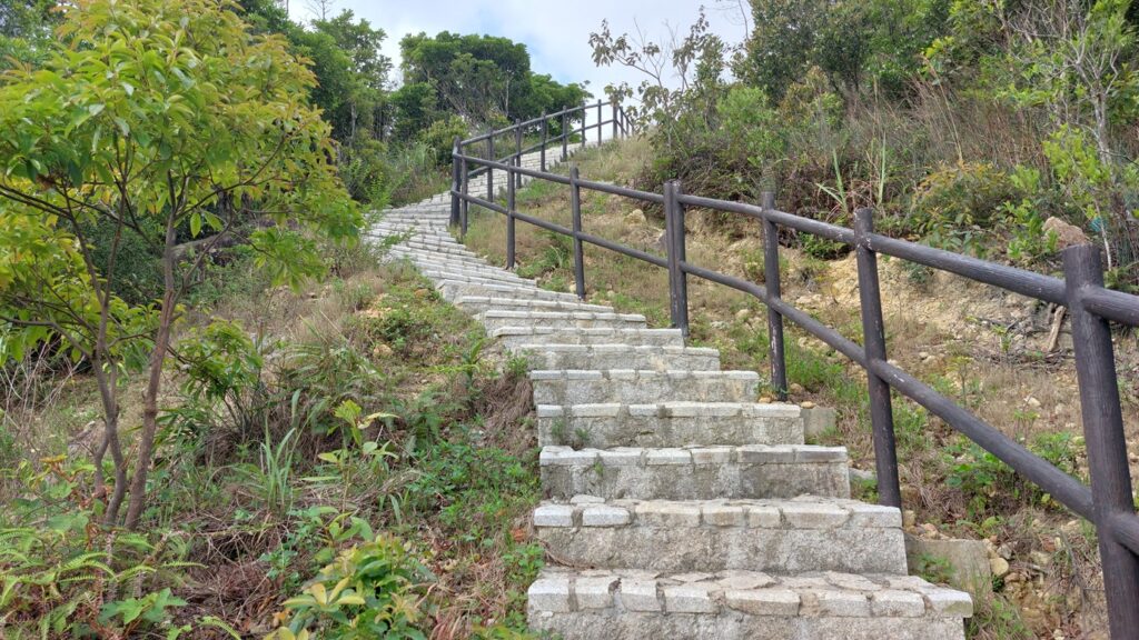 馬游唐站落車,前行至路口右轉寶琳路,沿衛奕信徑前行。行至山坳涼亭處,左走上山往大上托山頂,後沿路返回涼亭處。