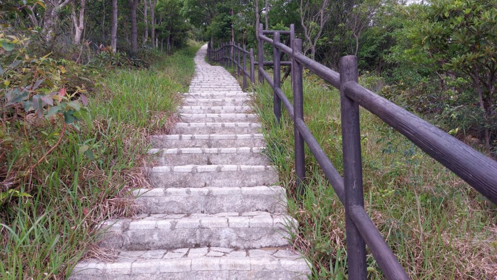 上大上托的路徑最近經修整,鋪設了平整的石塊梯級,相當易行。山頂被樹林覆蓋,無景可觀。