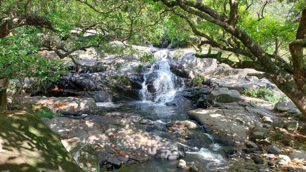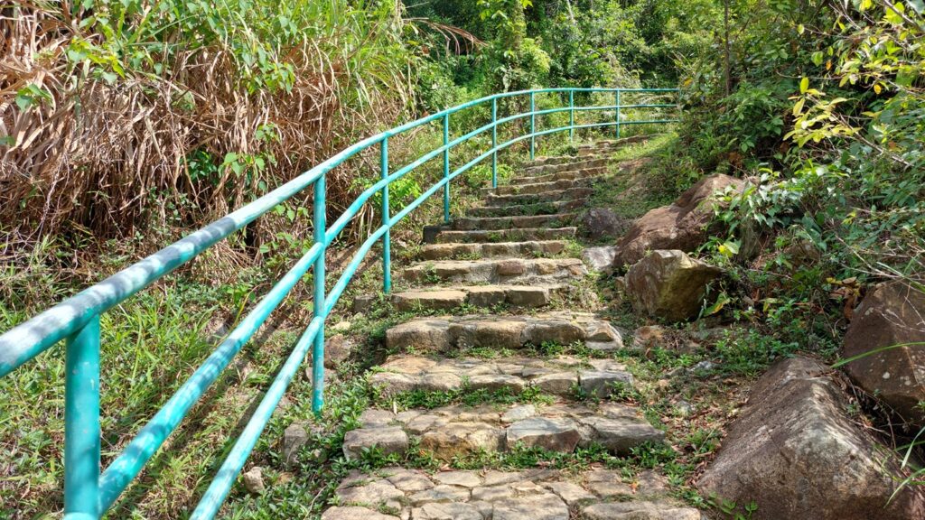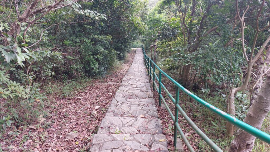 再沿衛奕信徑逆行,返回約500米,留意左側落翠琳邨的岔路,落小段看路牌左行蓮苑徑,至蓮苑台觀賞瀑布。