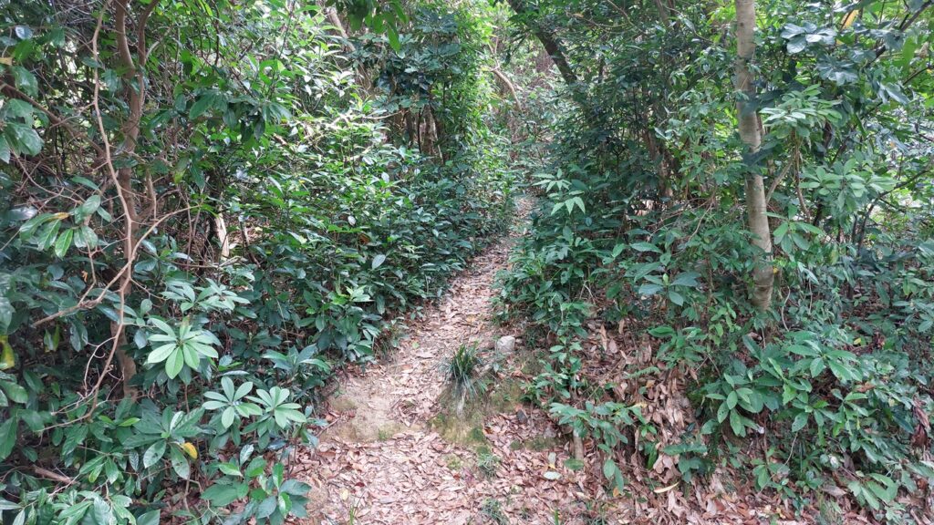 遮鴣山,東九龍最高峰。沿官方路徑上山不算難,只是本次是沿小徑上山,難度就大了許多。荒徑,陡峭崎嶇,好在有繩索幫助。至中途匯入主徑,再攀上幾段陡斜的梯級,上至山頂。後沿另一邊小徑下山往壁屋,這段路程不長,只是有較陡斜。