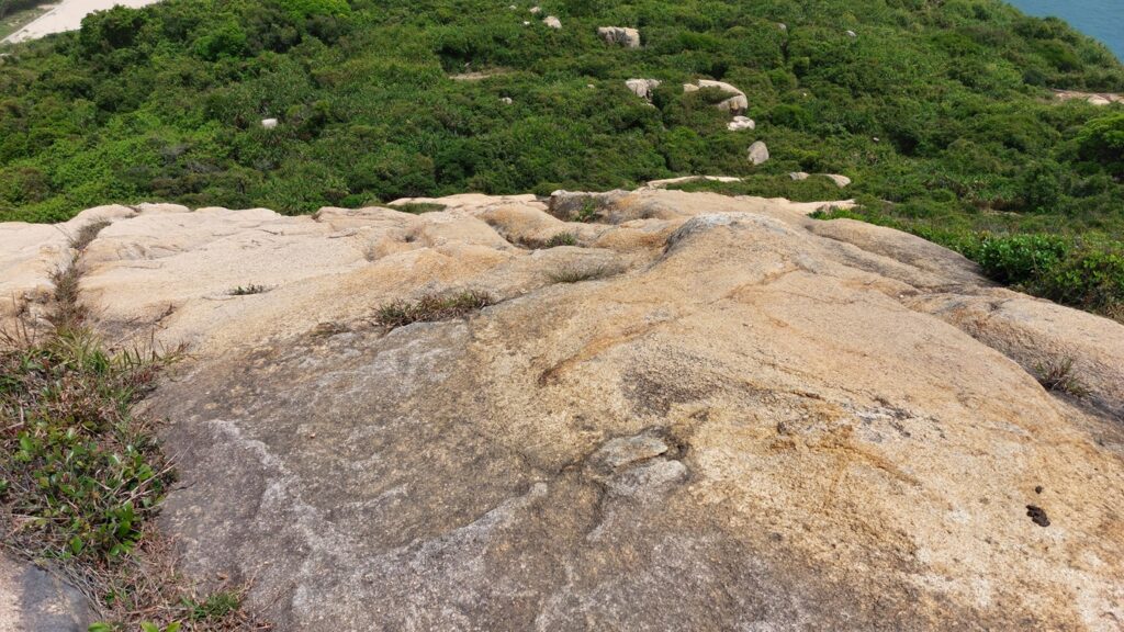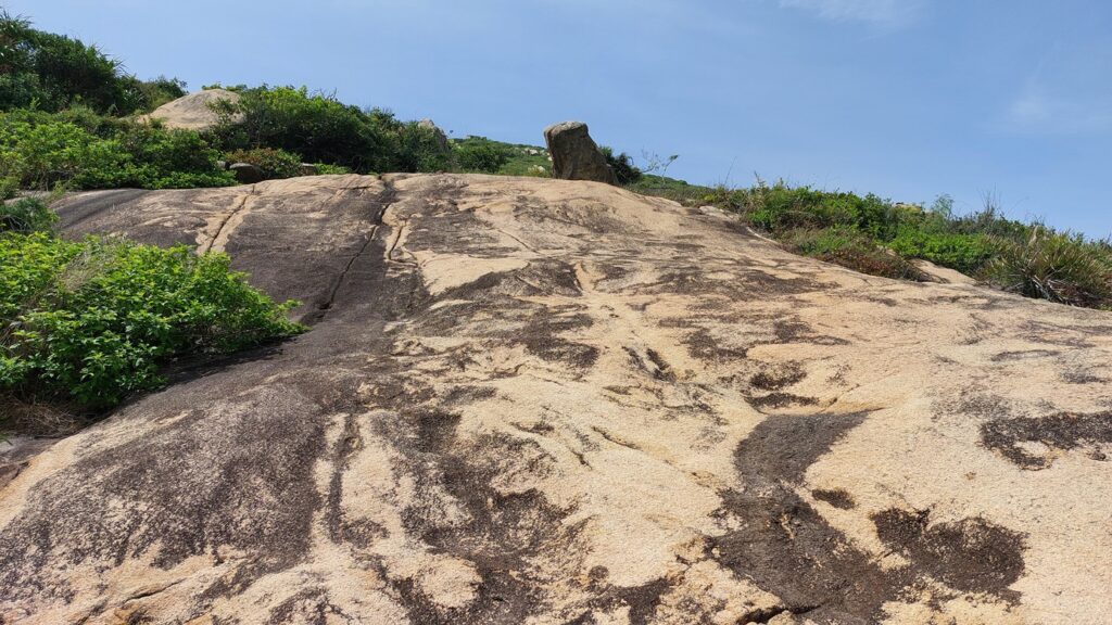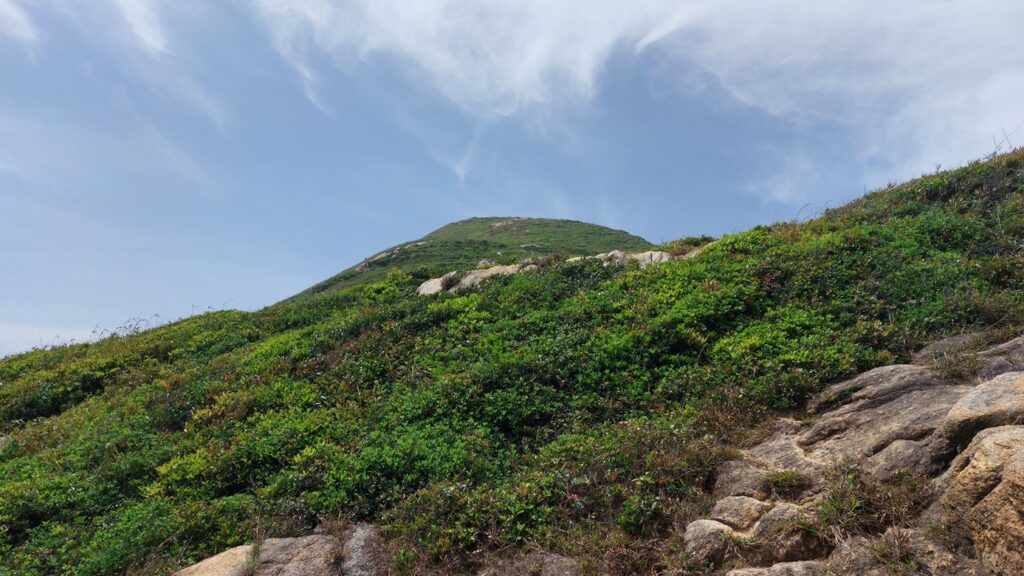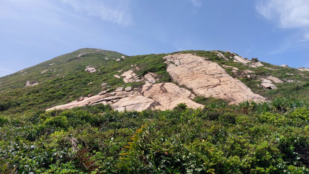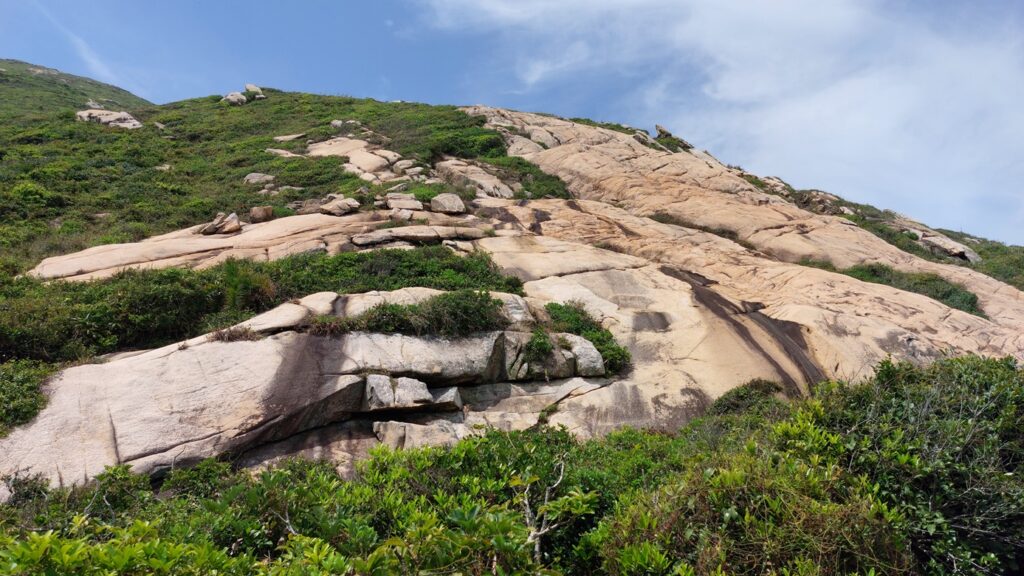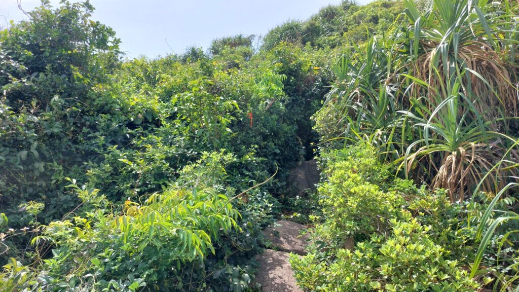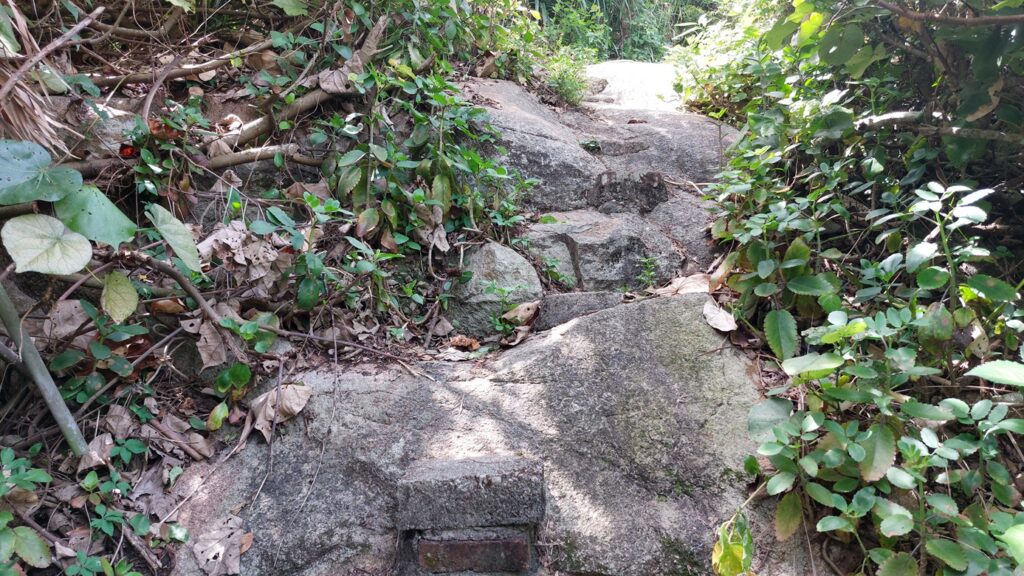 穿過海灘至士多右側的上山路口,沿路上山。先是一些石板路或梯級,不遠即到坡板脊。