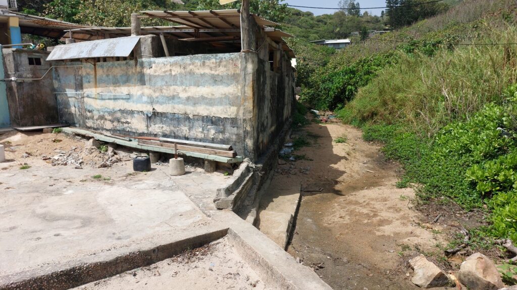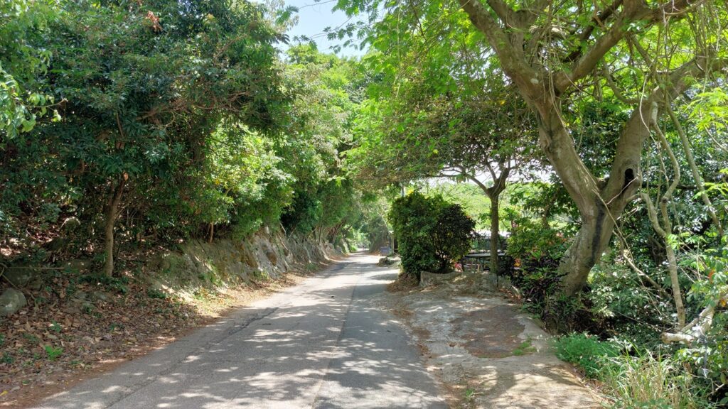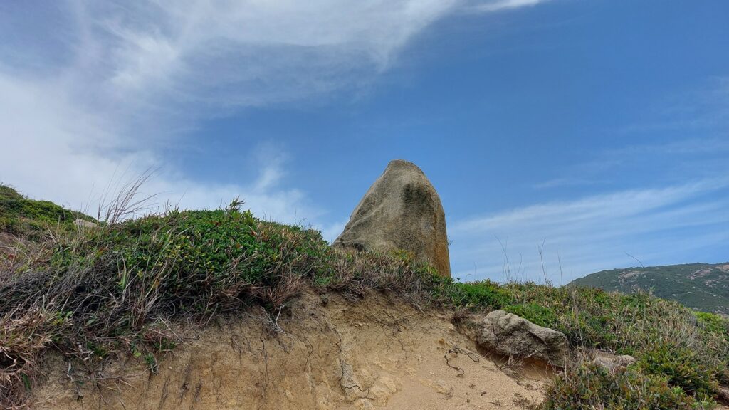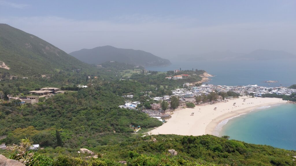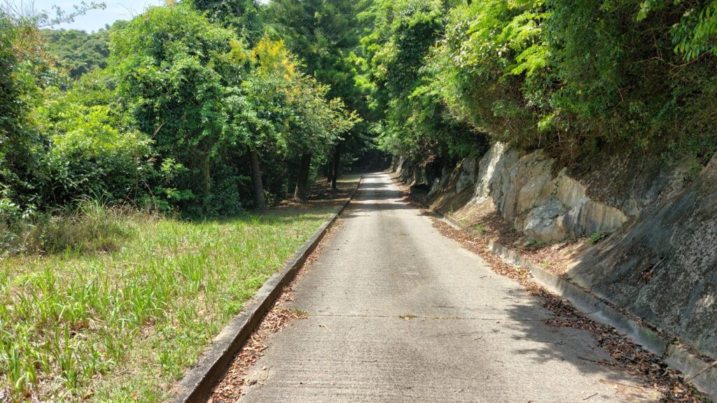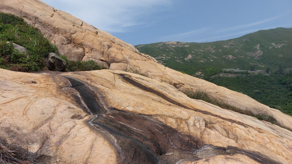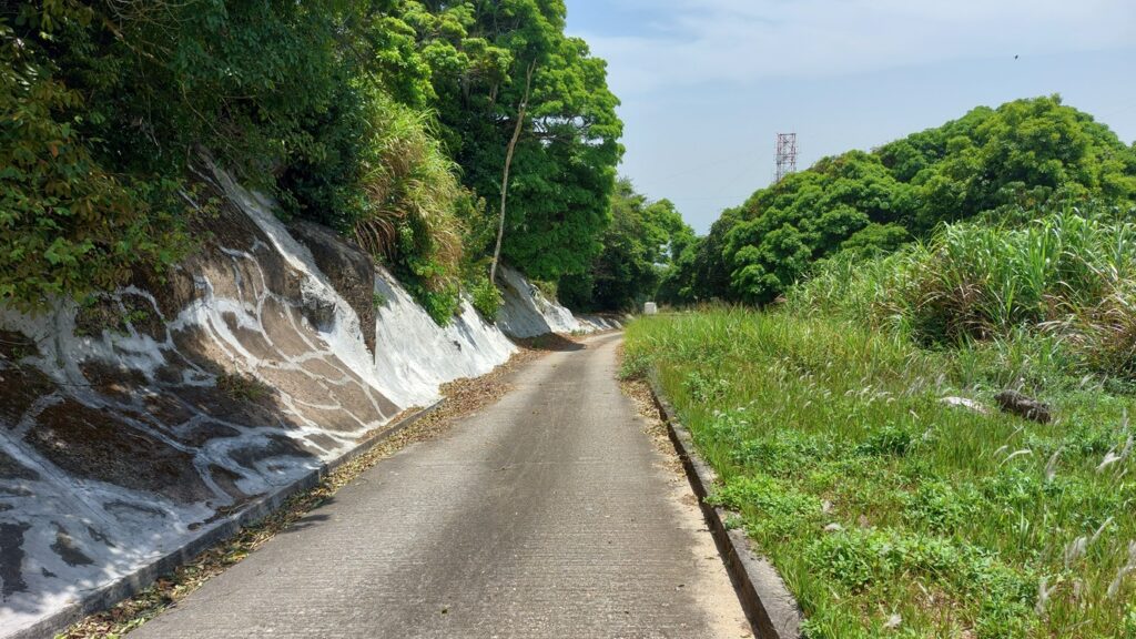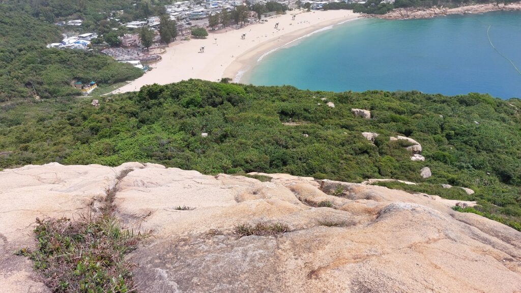 穿過海灘至士多右側的上山路口,沿路上山。先是一些石板路或梯級,不遠即到坡板脊。