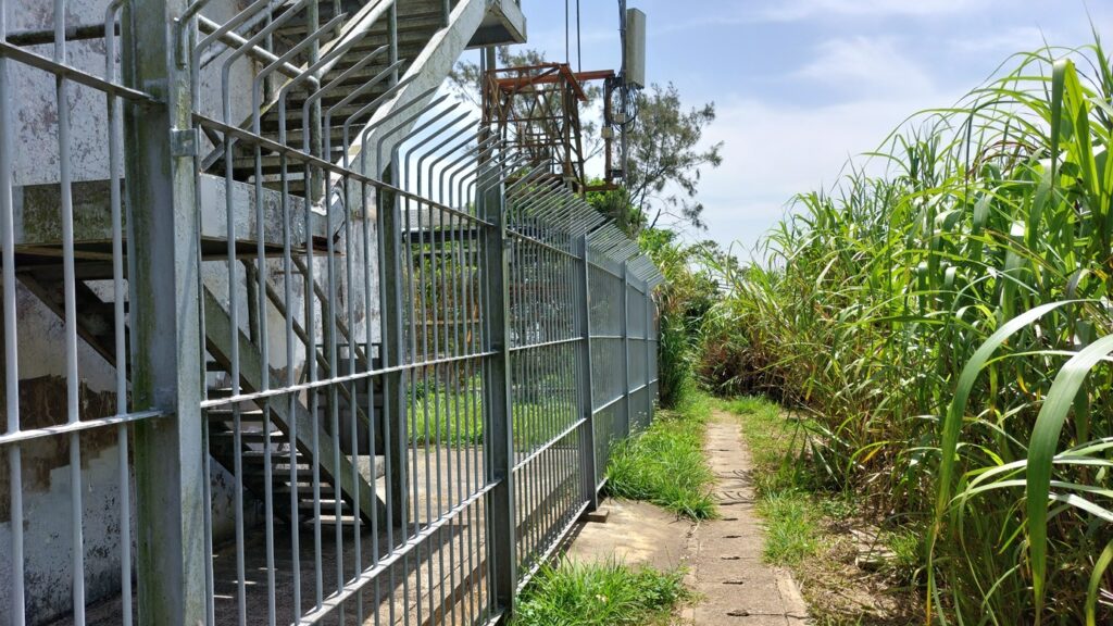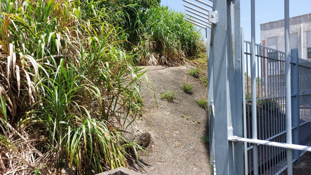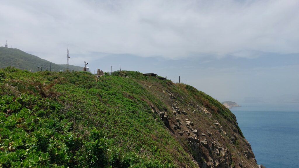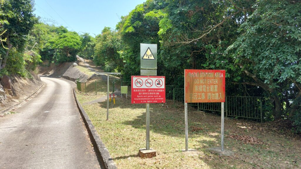 後沿另一面的小徑下山。小段荒徑落至發射站,繞過後沿馬路下行,至下個建築時,從左側圍欄邊繞過。續沿馬路落山,直至鶴咀路。需注意的是,山頂大片區域屬禁區,不要亂行。