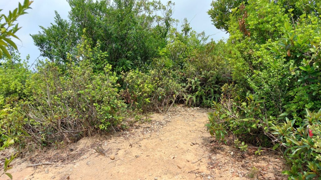 沿麥徑一路前行,經筆架山頂至鷹巢山自然教育徑,前行到鷹巢山腰分岔處,沿小徑上攀。經過兩個高度相若的山峰,下落返回麥徑。