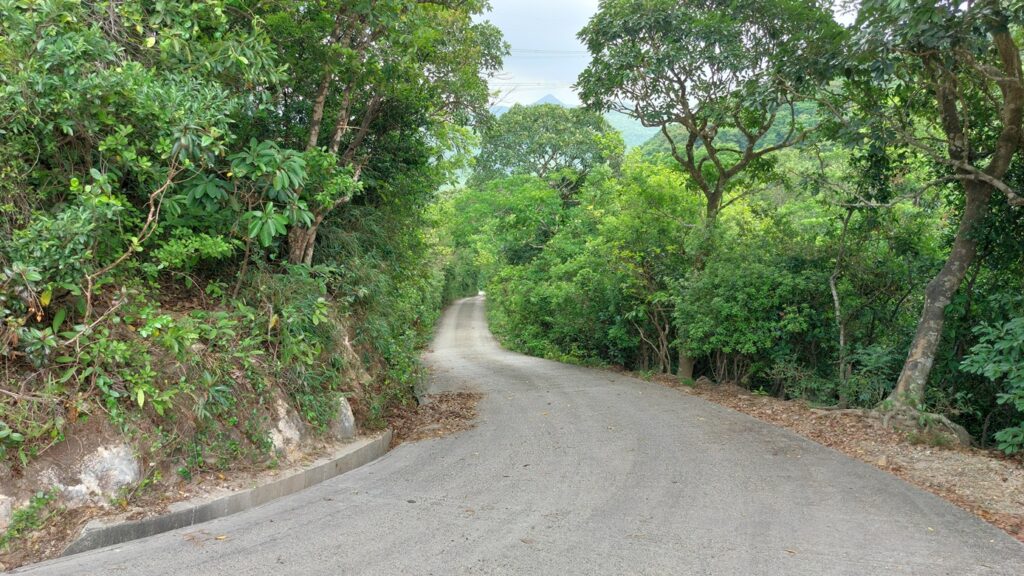 在返回麥徑的路口,直行上走小段梯級,就是琵琶山路。沿到琵琶山路上走直至琵琶山頂的配水庫。在山頂建築物側繞至其後方,即見九龍水塘界石。後沿路下山至大埔公路結束行程。
