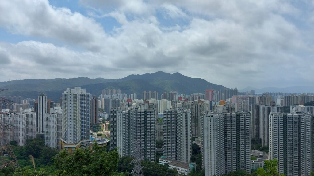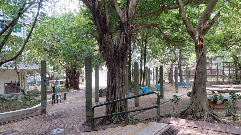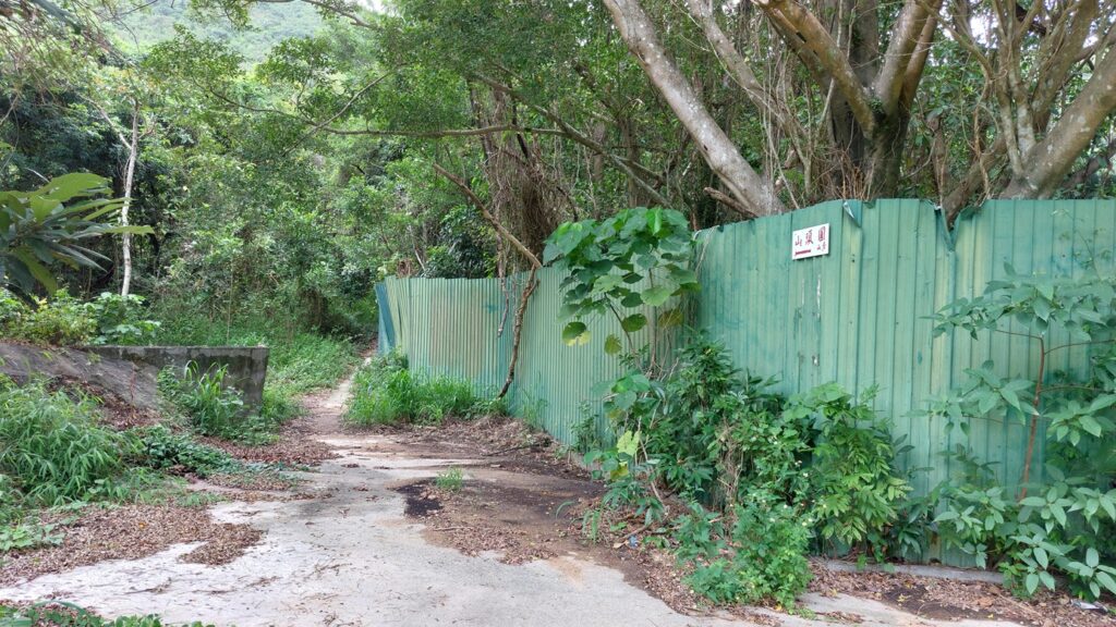 由良景邨良華樓與新會商會學校間行至山腳,沿對面小徑上山。