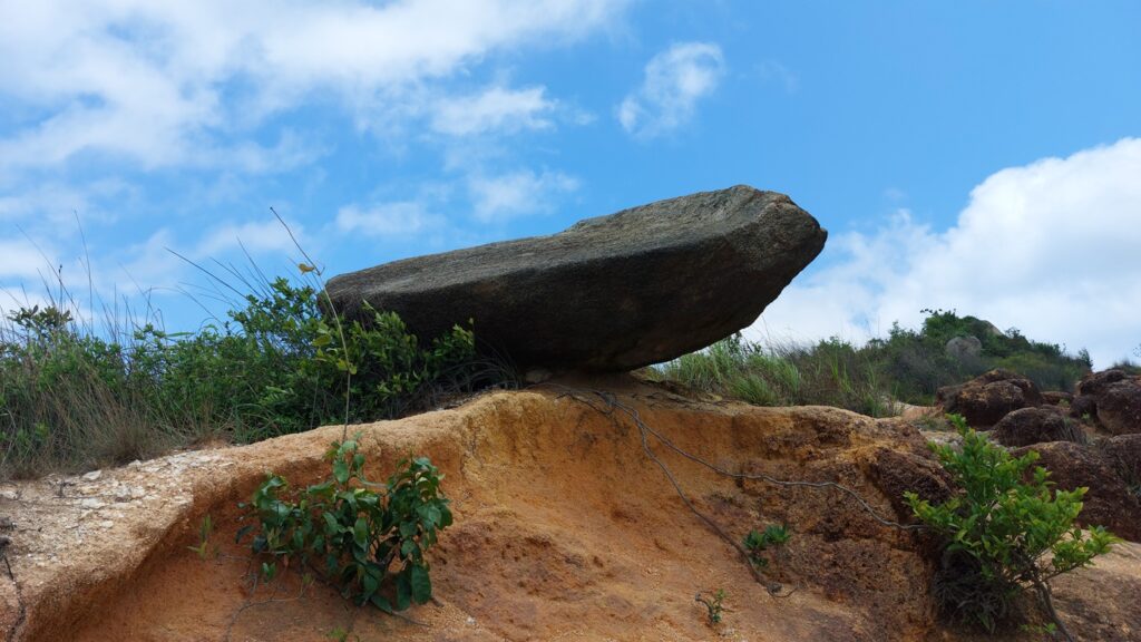 由圓茅山至靈渡寺,路徑跟青山至良田坳相似,都是嚴重風化的浮沙碎石路,加之路徑非常陡斜,上山難下山更難,每行一步都需小心,因而極其難行,極費體力。