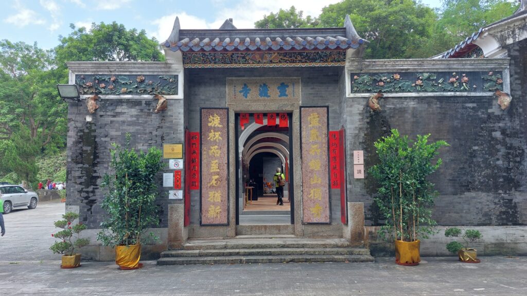 循北面繫有鐵錬的小徑急降。續沿徑前走,一路後降至靈渡寺。