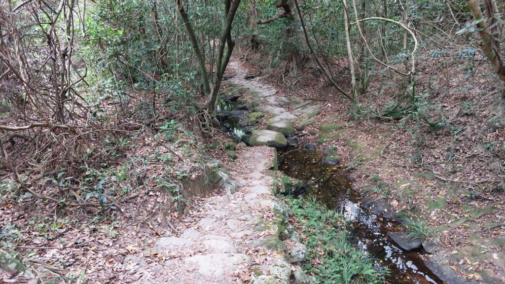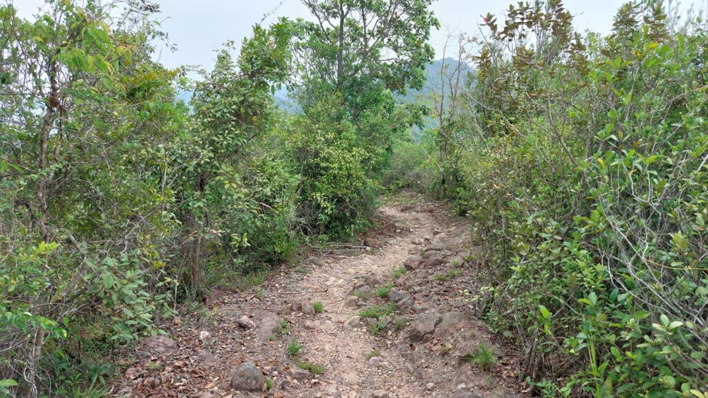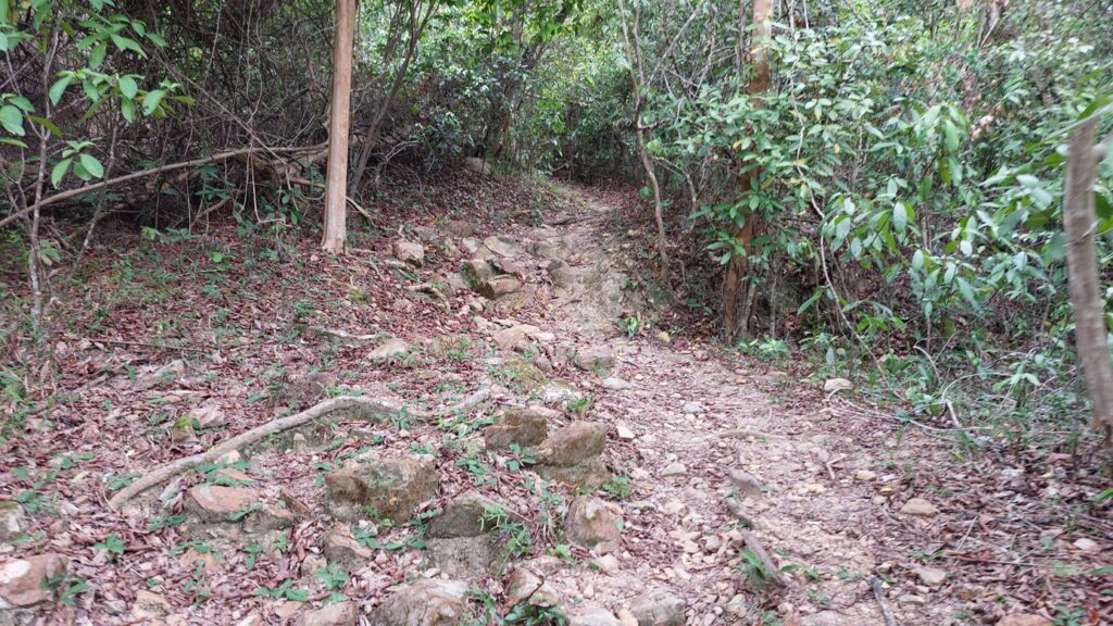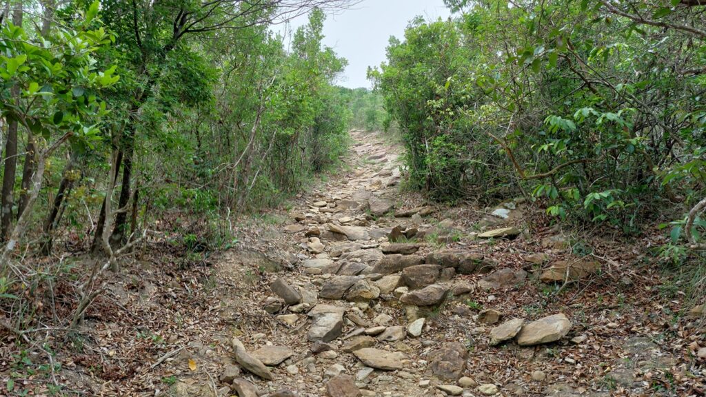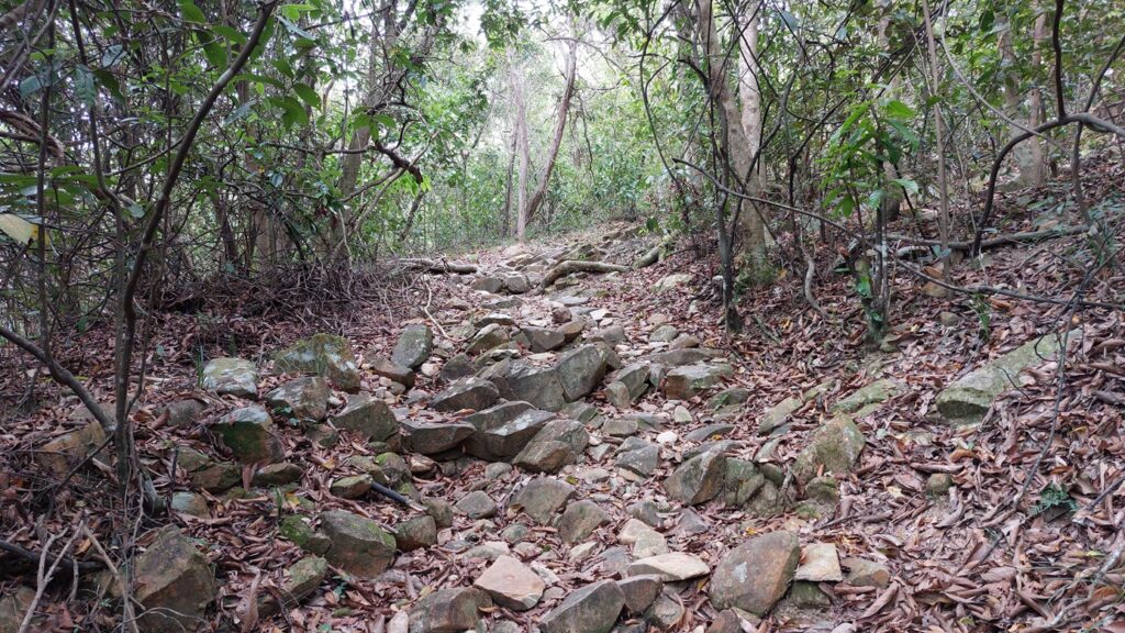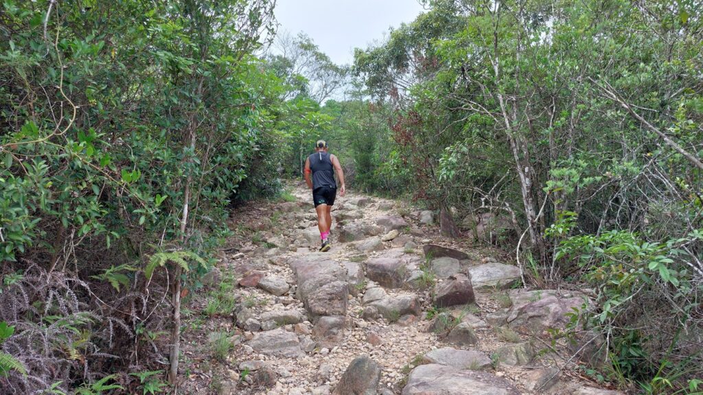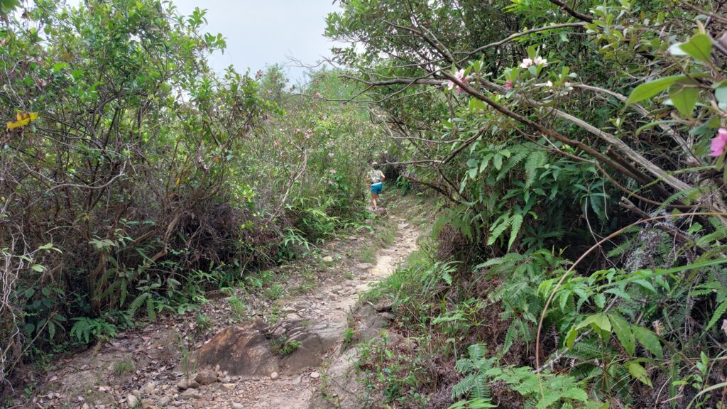 由下苗田上山至大峒段,當日剛好進行越野跑比賽,是賽程的其中一段。這段上坡攀升約200米,自然路面,亂石為主,難度較高。看到參賽選手快速前進,自己也自然加快了腳步,累得夠嗆。