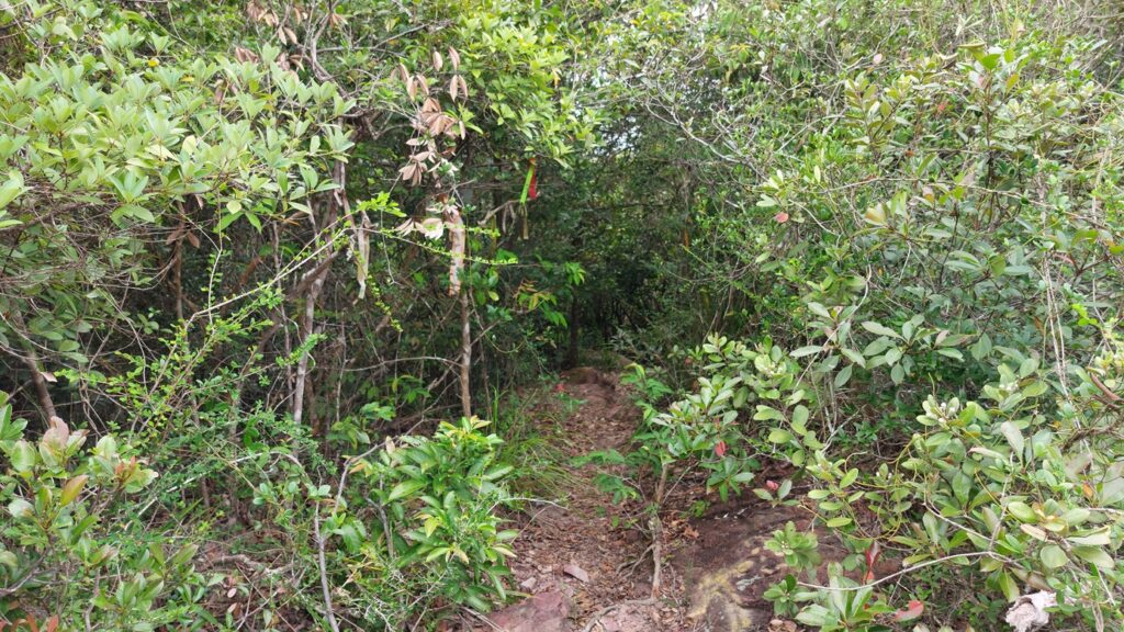 下紅石門段是樹叢中的荒徑,相當艱難。好在路徑還算清晰,只須留意一個分岔路口即可。