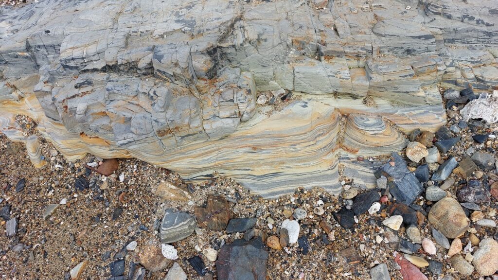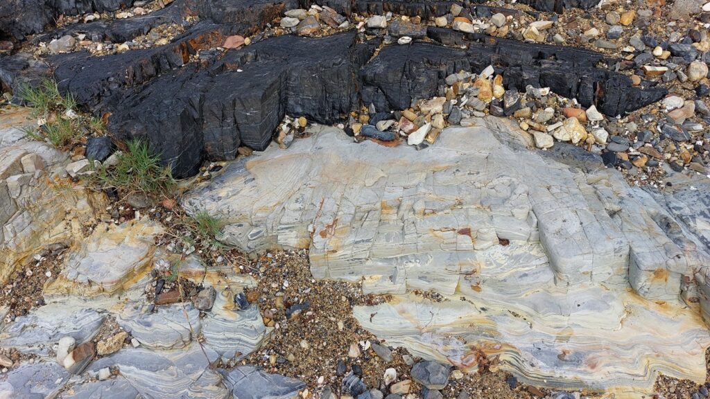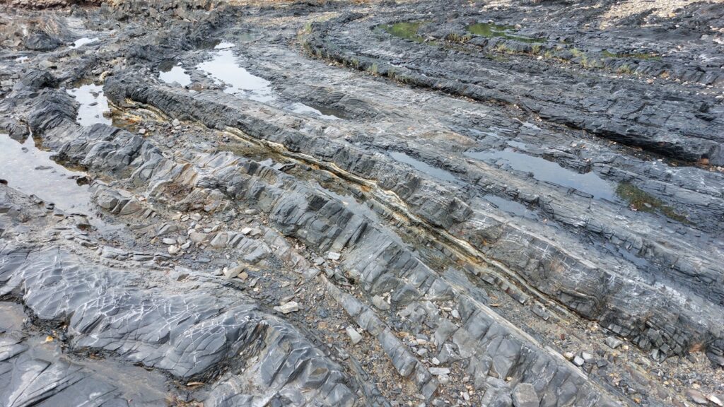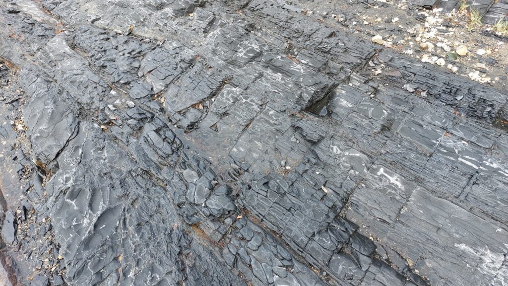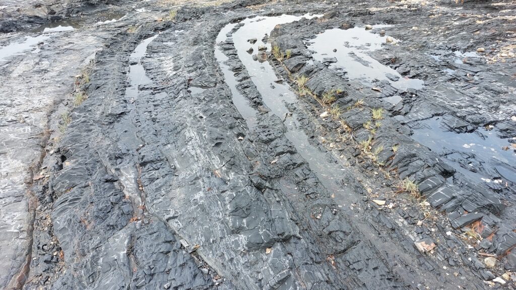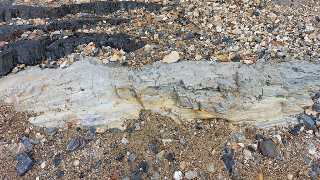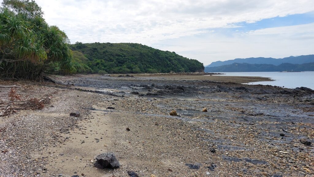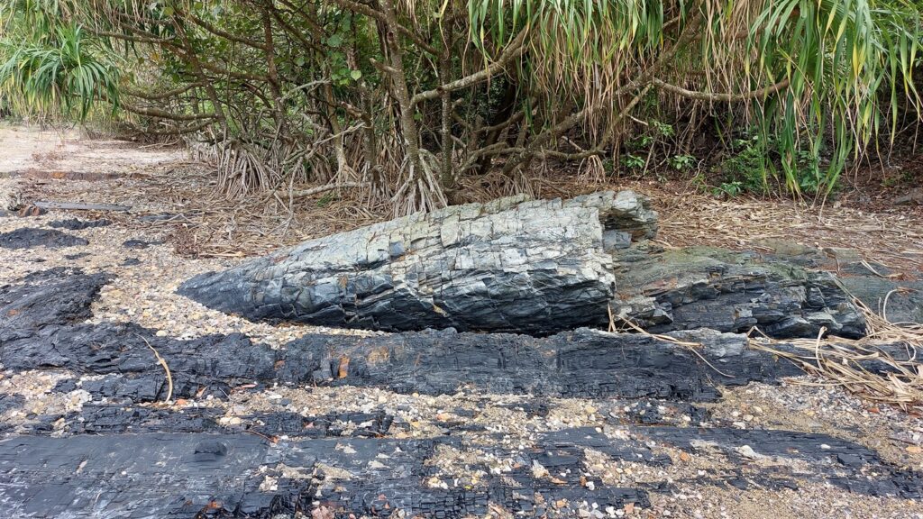 右走荔枝莊地質公園步道,欣賞黑色巖石。至碼頭後,再接水泥徑,經荔枝莊村上行,最後經南山洞走至白沙澳的海下路。