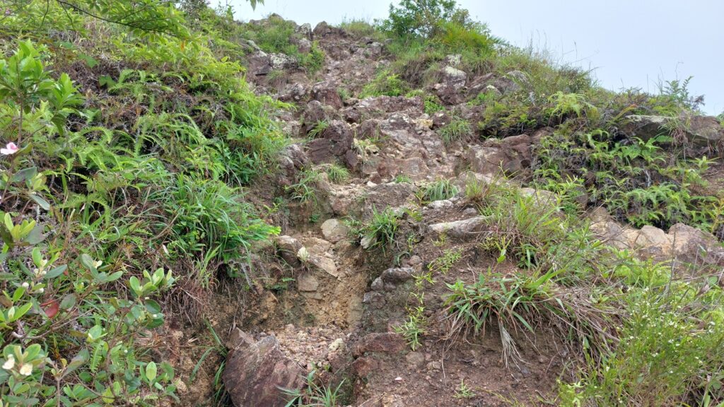 本行程的主要目標,登蚺蛇尖,難度跟預期的差不多。當然難度大,不但陡斜需攀爬,且攀爬的地方太長了。陡斜的長攀爬,不但需腳力,還需要較強的手、腰、腹、背的力量,這感覺更辛苦費力。不過,這也是鍛鍊的機會。