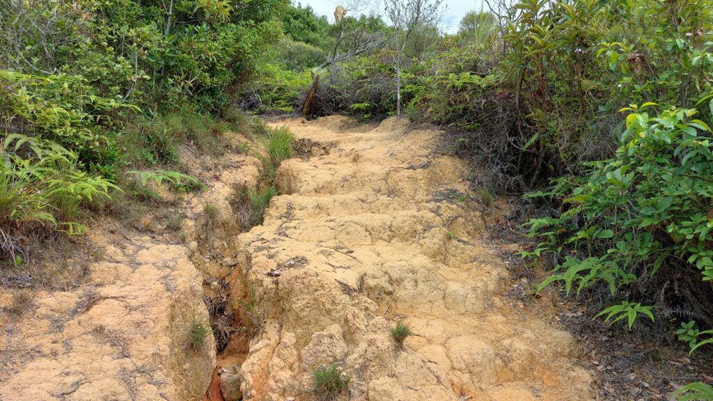 有些意外的是,路徑有部分修得非常好,而有些根本就荒徑,也無路牌指示,不知為什麼沒規劃成郊遊徑。入口在管制區內,有崗亭有人看守,不過也不問。下山後,行往欣澳站時需越過馬路跨過護欄,非常危險。如此種種,望以後會改善吧。