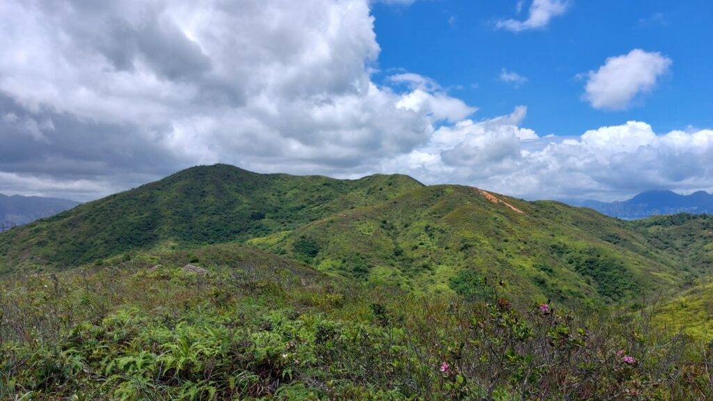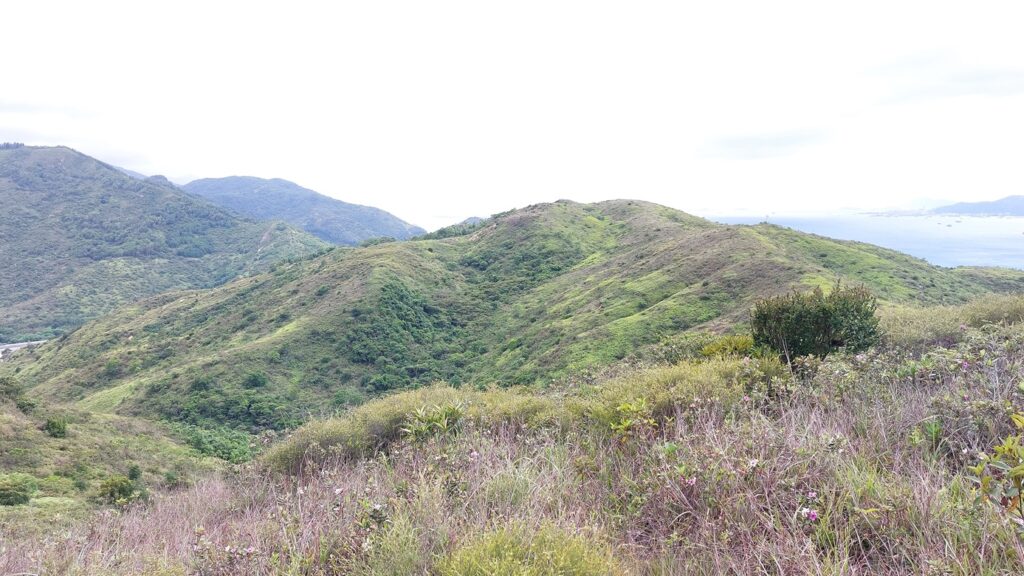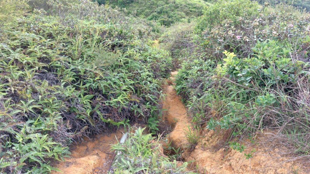 花瓶頂返回少少轉支路往大陰頂。這是段荒徑,多草叢,少數路段較陡斜。先落後上至大陰頂,後沿徑落山,至欣澳道。