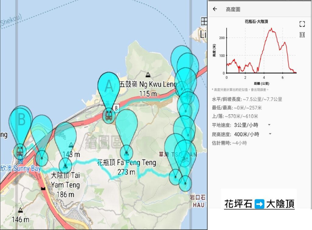 - 全長︰ 8km,△570m/▽610m, 4+1 hr