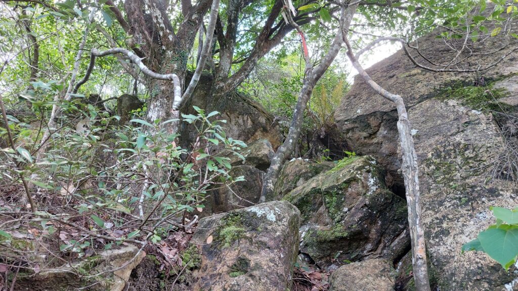 選擇由東山下上山,密林草叢,崎嶇陡峭,險峻攀爬。中間一段山脊路相對普通,難度不大,就是曝曬。由白燕岩下山,算是最難的一段。特別是有一小段,不到百米,但極其艱難。非常陡斜,碎石浮沙,路邊少有借力的樹枝或石頭,需用「坐櫈仔」方式下落,相當辛苦。