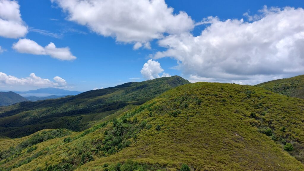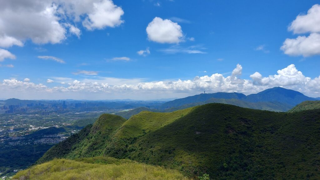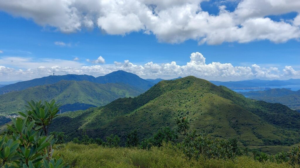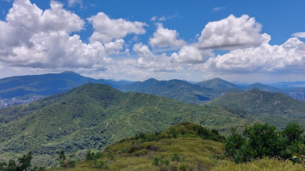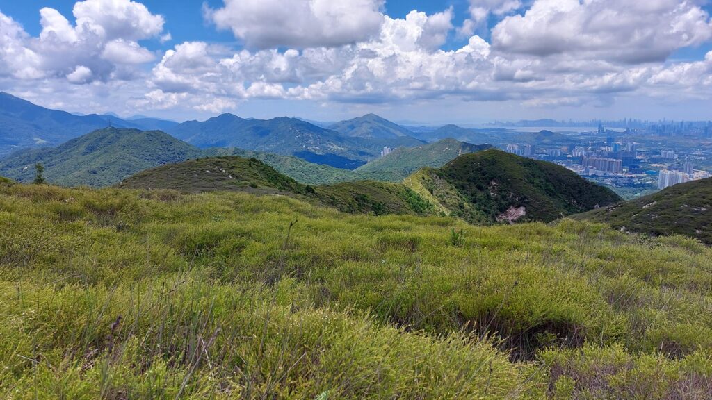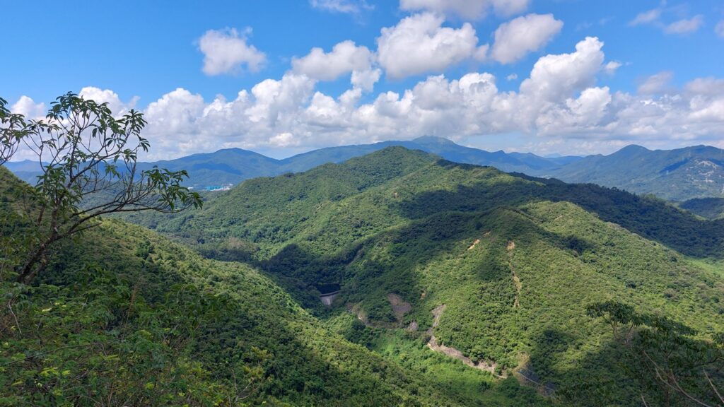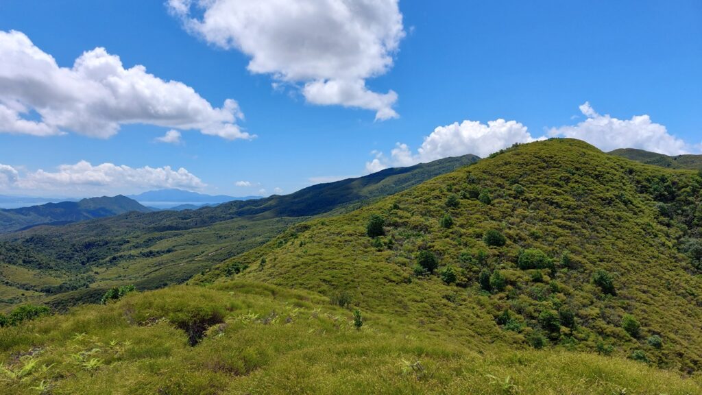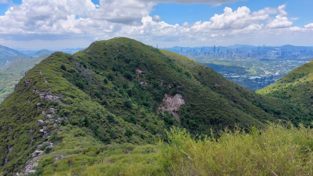 先經尖尾墩(435)攀上南山頂(466),再經長排崠(463)、大山峒(463)、青山頂(499),直至白燕岩頂(472),後落山至鶴藪水塘。