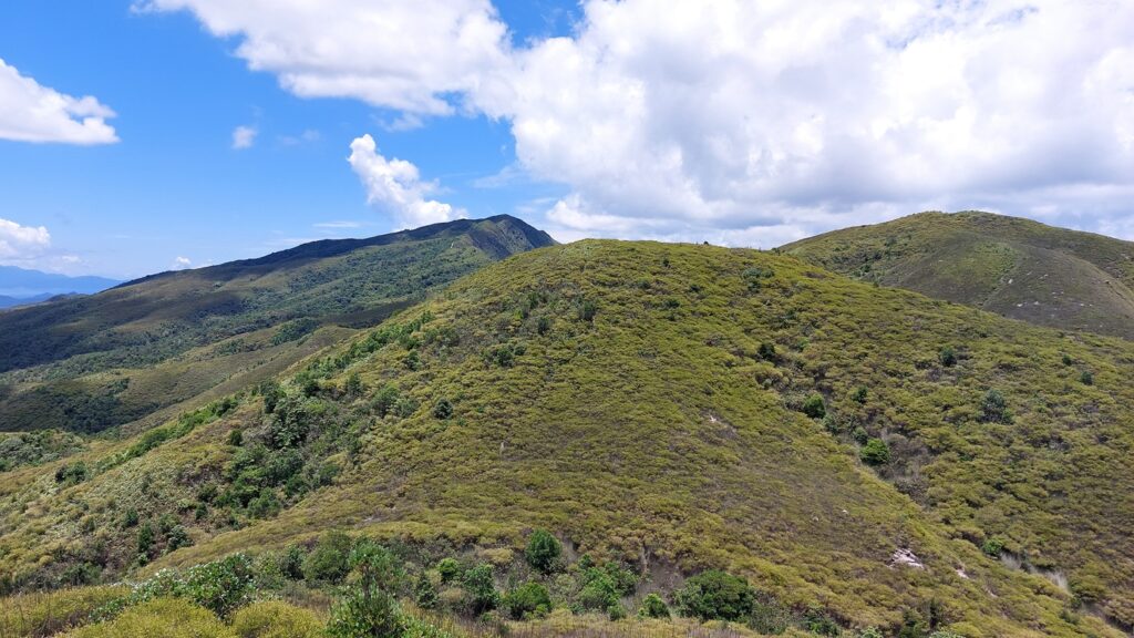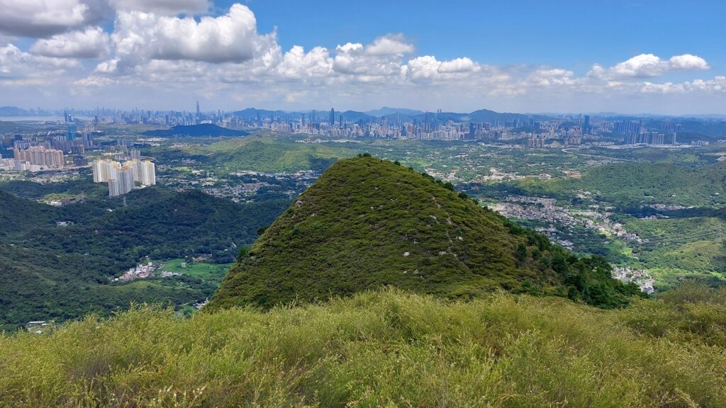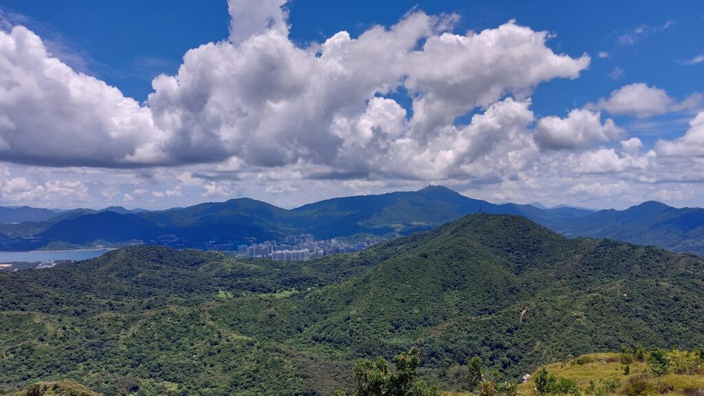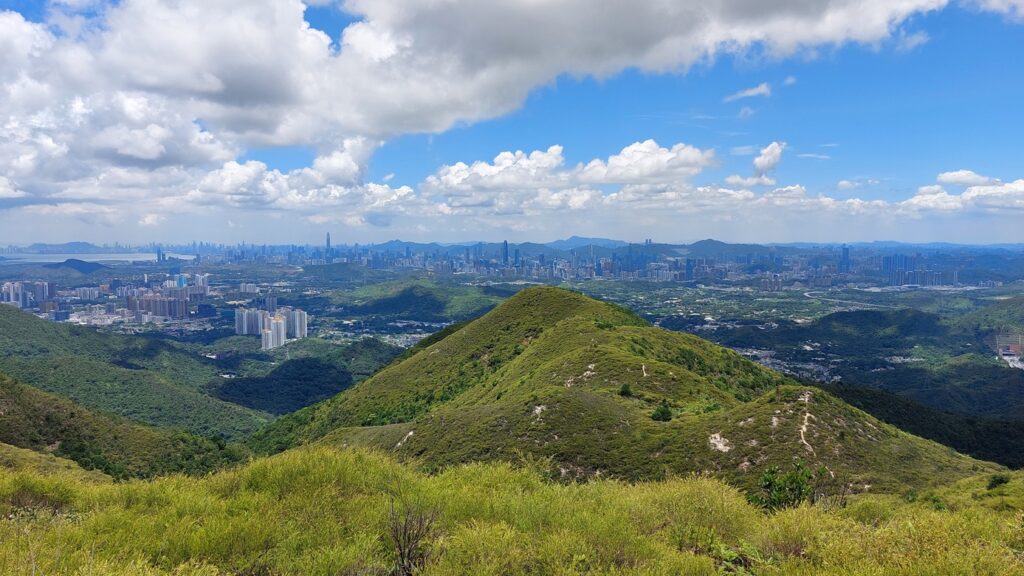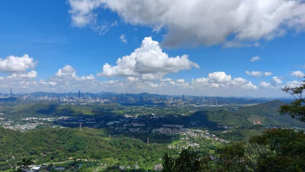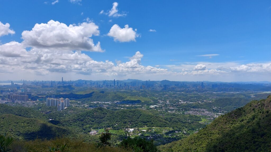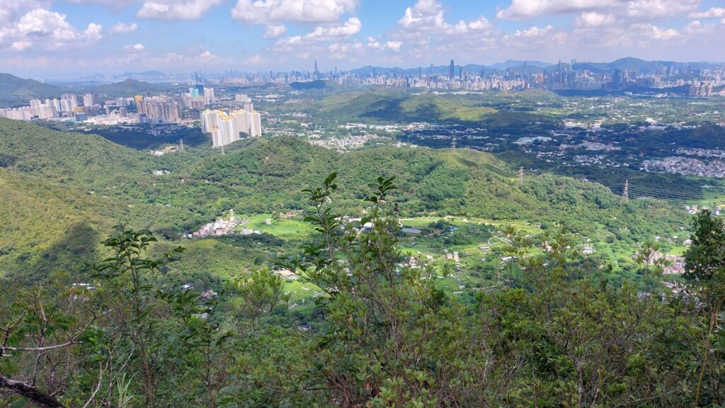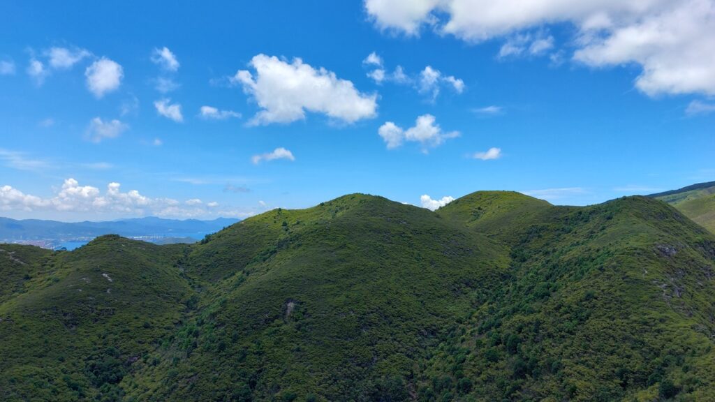 先經尖尾墩(435)攀上南山頂(466),再經長排崠(463)、大山峒(463)、青山頂(499),直至白燕岩頂(472),後落山至鶴藪水塘。