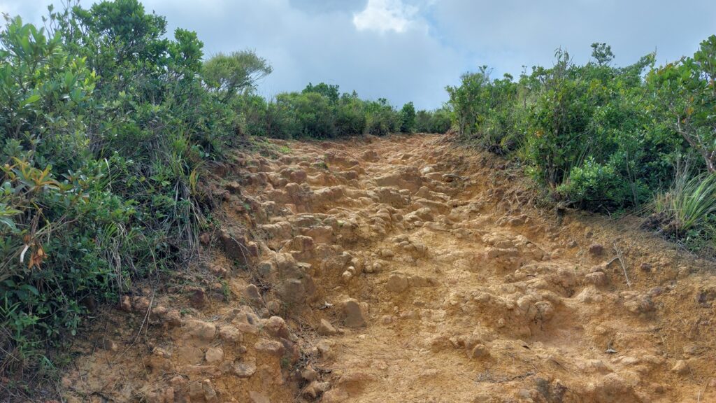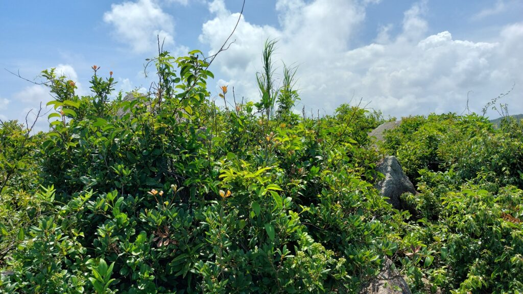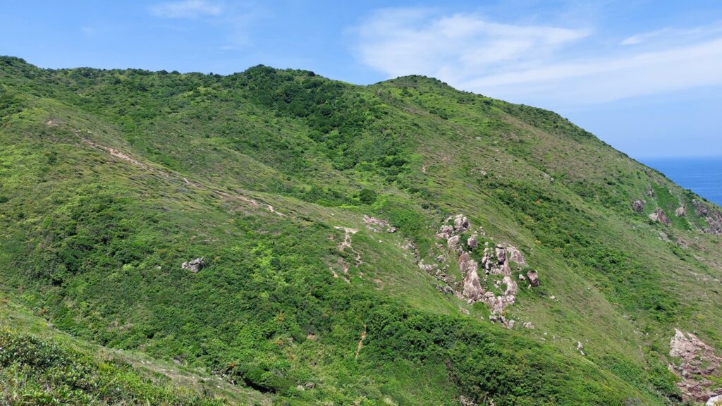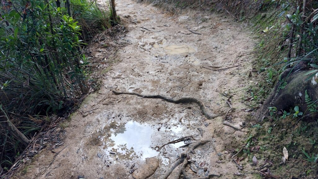 行程比預想的更艱難。荒徑崎嶇陡峭不必多說,路徑草叢茂密比秋冬更嚴重,有幾段需穿密林,加上雨後路徑濕滑,行來更加費時費力,用時比預計的多一小時。建議行此線路時,選擇在秋冬季節,雨後不宜。