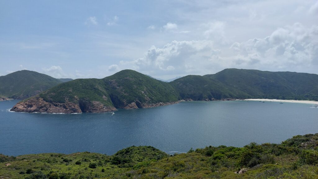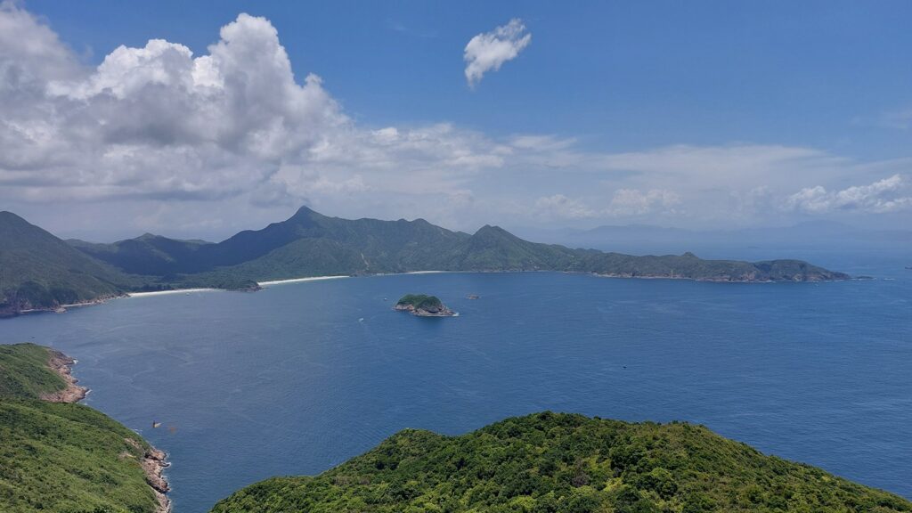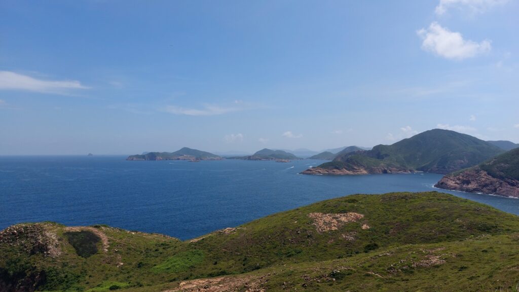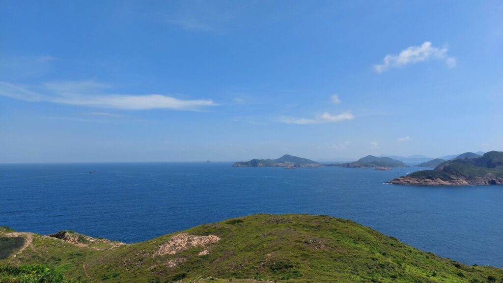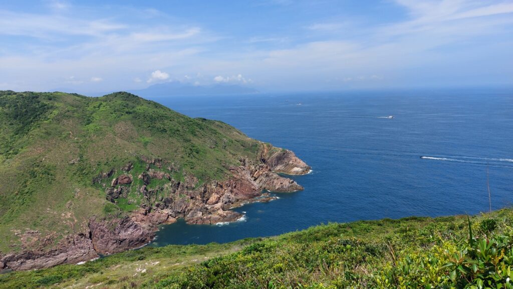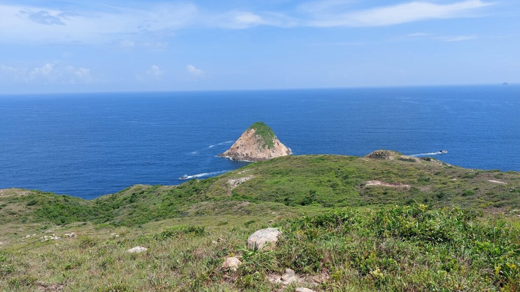行程雖辛苦,景觀還是很靚的。從另一角度欣賞大浪灣及蚺蛇尖;東邊廣闊的大海水天一色,遊艇在海上穿梭不斷;罾棚角咀一帶的海蝕洞極具特色,飯甑洲更是其標誌,還可從另一角度欣賞標尖角及破邊洲;美麗的浪茄灣遊人眾多。