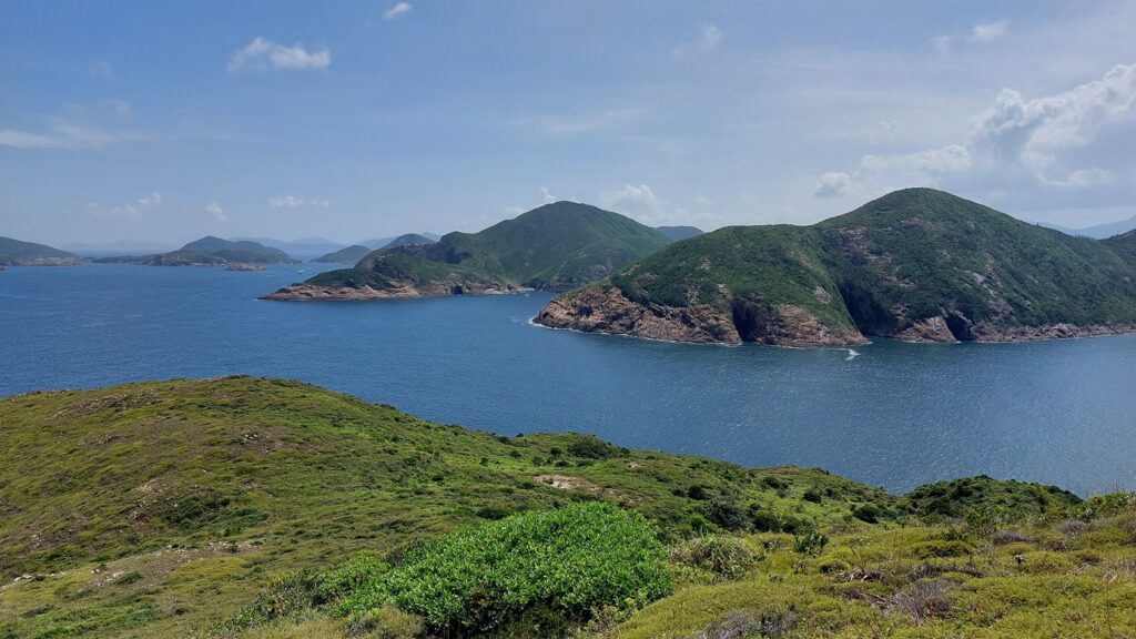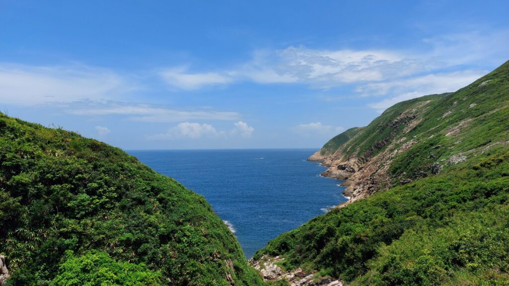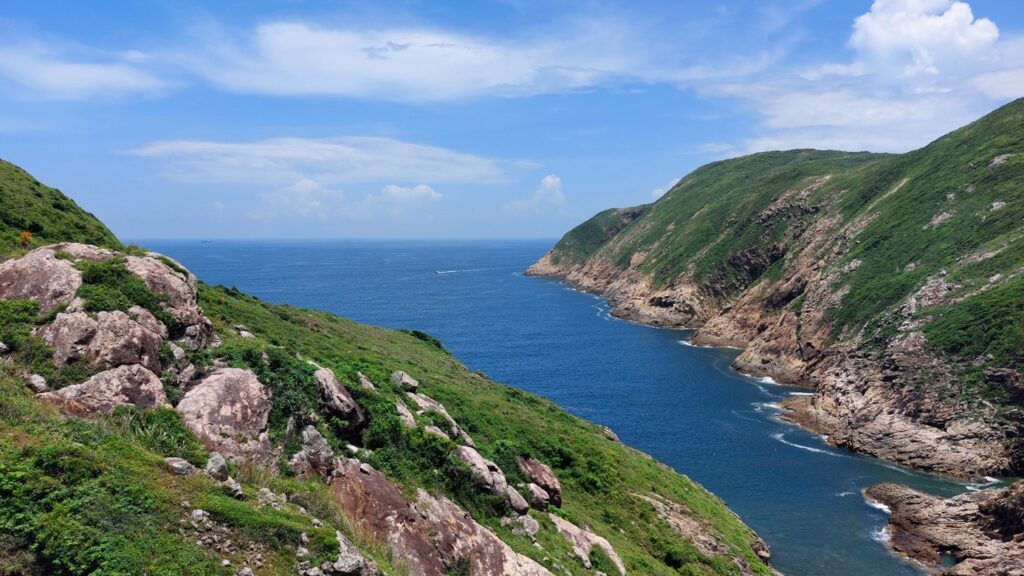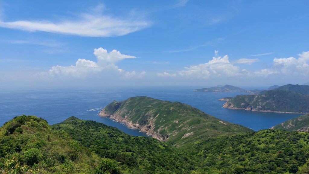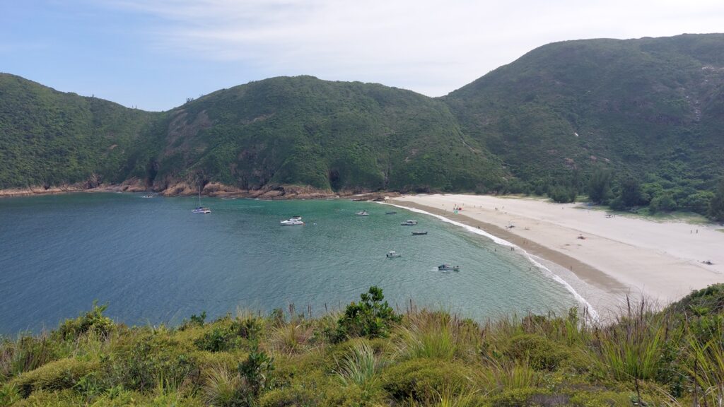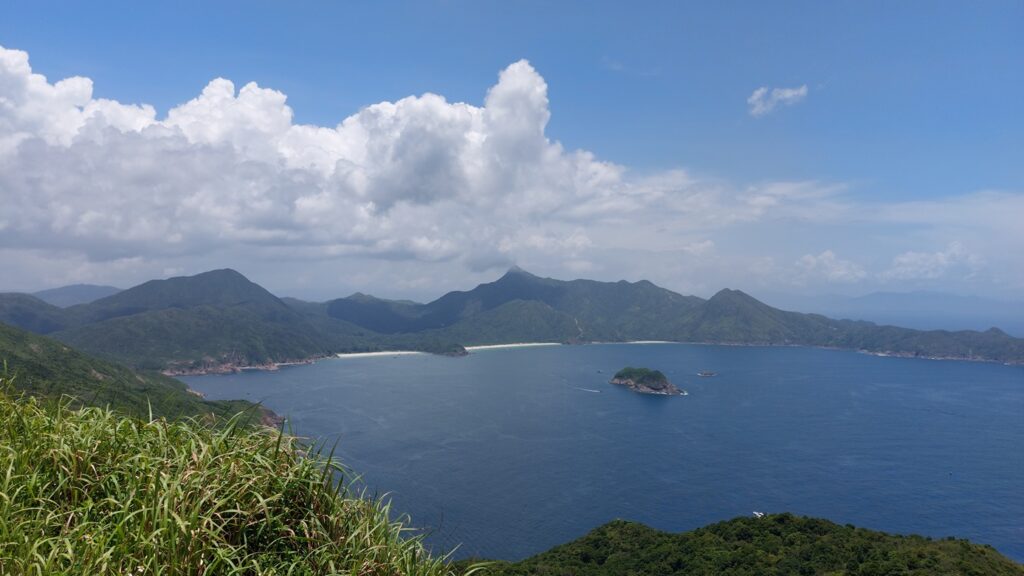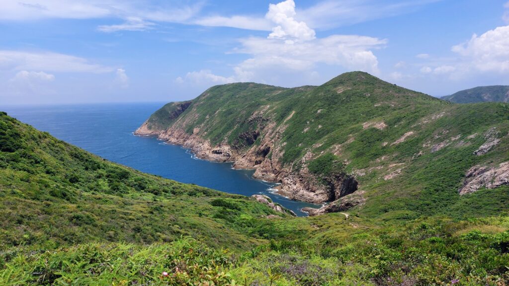 行程雖辛苦,景觀還是很靚的。從另一角度欣賞大浪灣及蚺蛇尖;東邊廣闊的大海水天一色,遊艇在海上穿梭不斷;罾棚角咀一帶的海蝕洞極具特色,飯甑洲更是其標誌,還可從另一角度欣賞標尖角及破邊洲;美麗的浪茄灣遊人眾多。