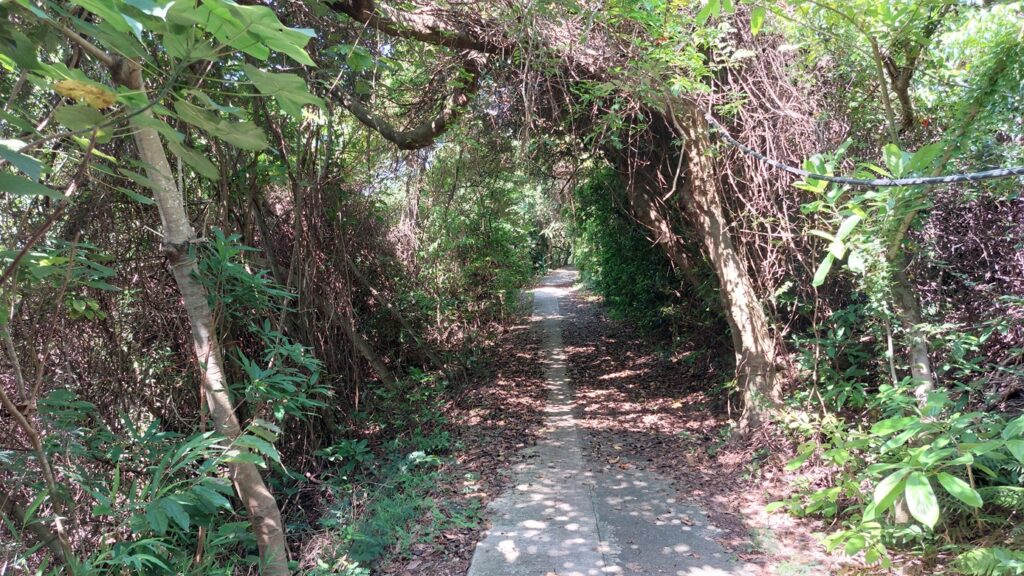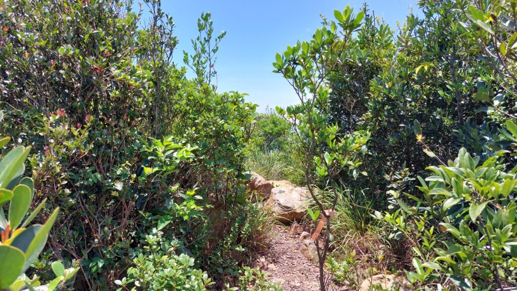 由陡峭崎嶇曝曬的山徑,落至海邊涼爽平坦的衛奕信徑,即刻變得無比輕松,簡直是享受!此一時彼一時也。邊上就是牙鷹角營地,有水有陰涼有座,正好休息清洗。